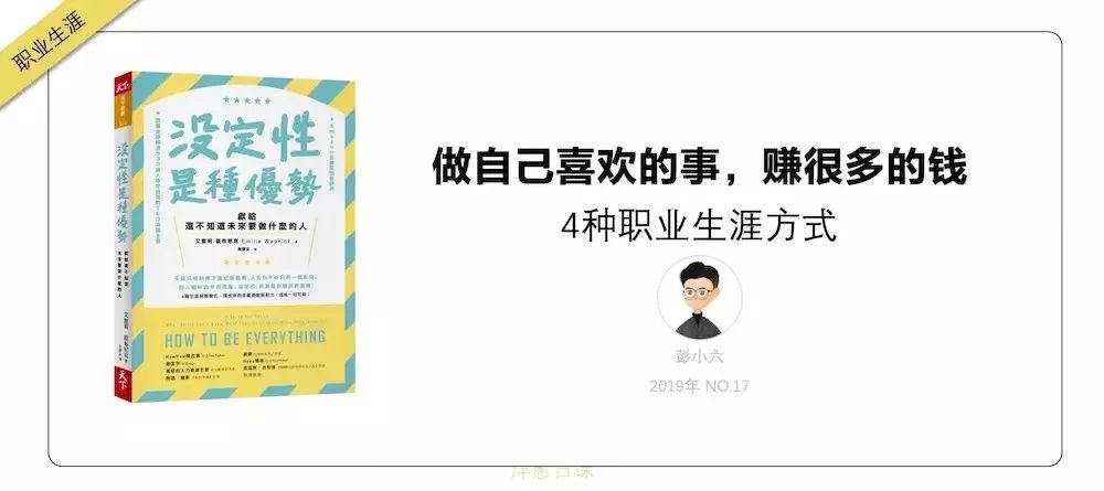 《没定性是种优势》(繁体版)中,就提到了四种职业生涯方式,可以让我们一边工作,一边做自己喜欢的事情,还能挣很多钱。