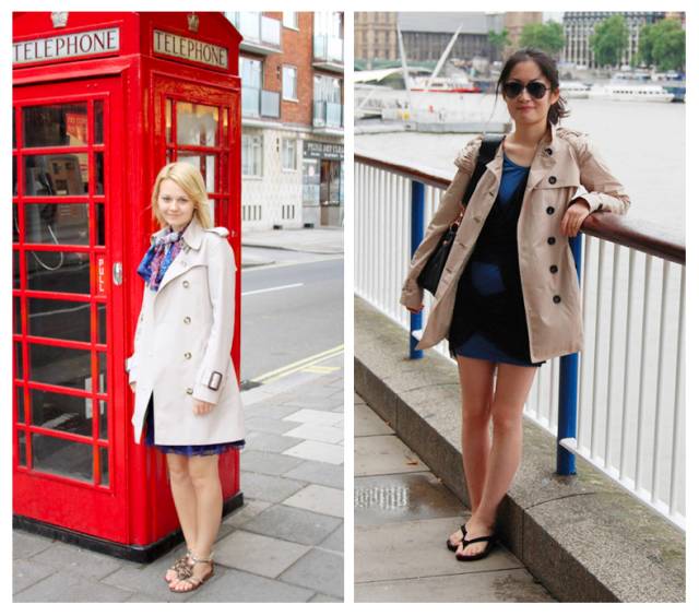 上述图中的搭配都很漂亮,妹子们都敞着风衣,如果把风衣腰带系紧,当裙子穿,也美美的。不过相比之下,两者中我更喜欢敞着搭裙装。