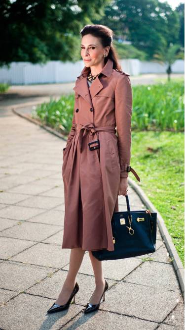 搭裙子穿时,裙子的长度最好不要超过风衣,最多露个小边就可以了。裙长一旦长太多,通常显邋遢,不时显得村。