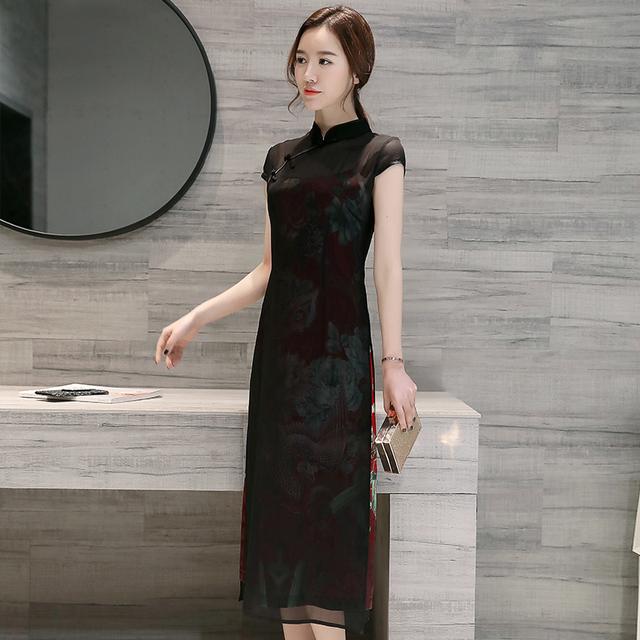 2017新款黑色修身日常旗袍,拉长颈部线条美,简洁与复杂透露着成熟女性性感妩媚,走心设计,穿着更加时尚,造型更加百搭。