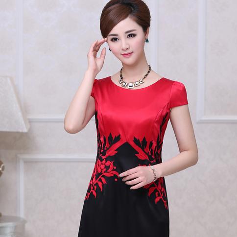 2017夏季新款中年大码妈妈装真丝旗袍连衣裙,不管走在那里都是美丽的焦点,简约一字领,简洁大方,露肩设计,在夏季穿着不仅凉快舒适又展现出轻柔的小性感时尚又清新。