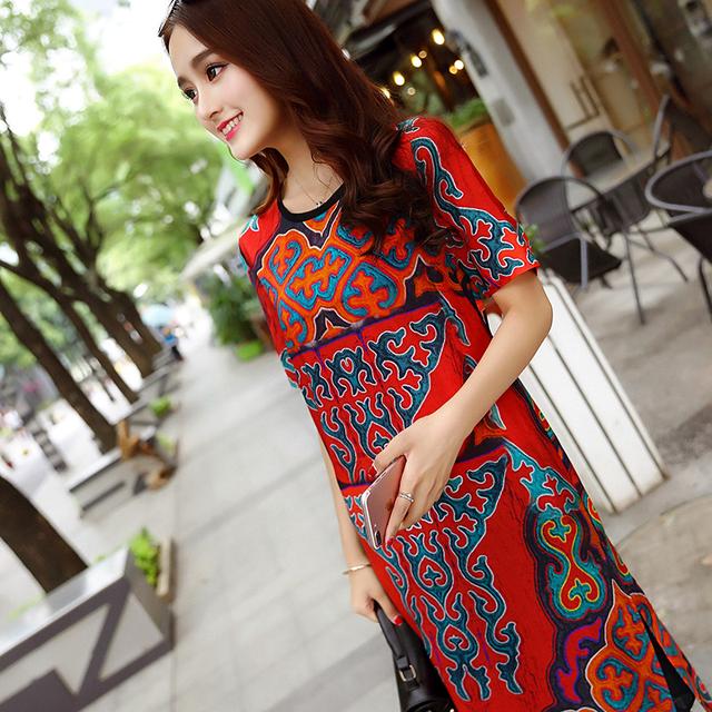 真丝印花宽松大码桑蚕丝中长款连衣裙,,彰显高雅的名媛风范。流畅的线条,自然大气,不失时尚的气质。丝滑的真丝面料,健康亲肤。享受奢华的体验。