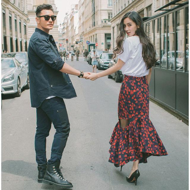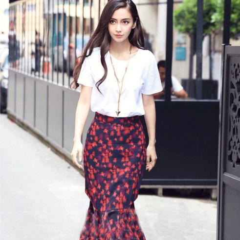 高腰中长款不规则半身裙,美观大方,走路更加自然,摆脱束缚,美丽不再拘谨。碎花鱼尾设计,名媛范十足,今夏必备款