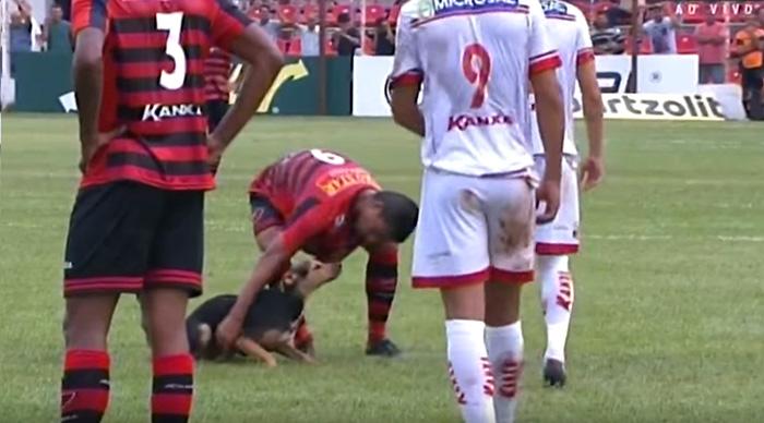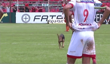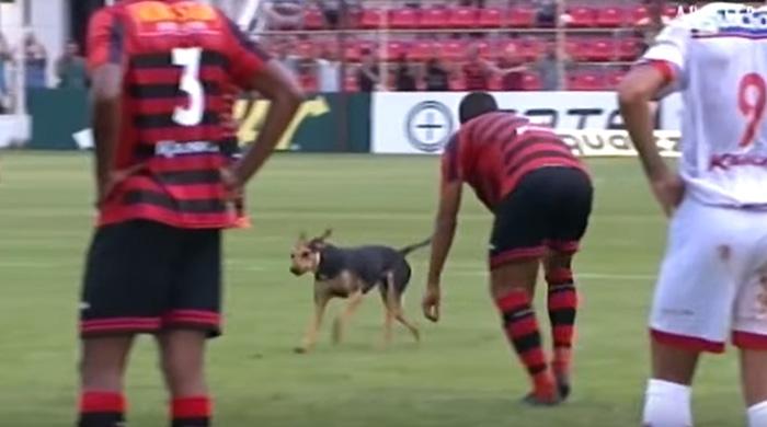 上周三在一场巴西冠军赛中,一只可爱的流浪狗无意中冲进了正在进行中的比赛中,给所有在场的人带来了一份惊喜。