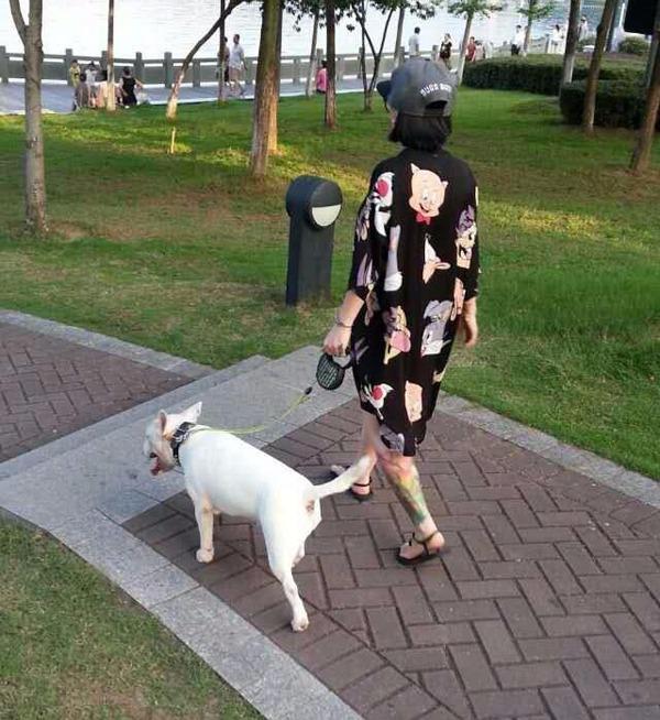 老人家的经典问题之二,是宠物身上携带的细菌和病毒对婴儿的影响。实际上,做好定期宠物定期驱虫,疫苗和洗白白工作,以及自己本身的清洁工作,就能很好的避免这些问题了。下图是我朋友白板和她的主人怀孕中的白板妈妈一起散步的场景。你看白板的清洁工作做得多好!