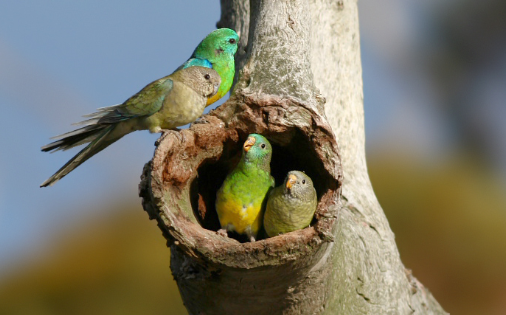 鹦鹉的窝通常是树洞,鹦鹉们在这里生蛋并孵化出幼鸟,小鹦鹉在成年前会一直呆在窝里过着饭来张口的生活~
