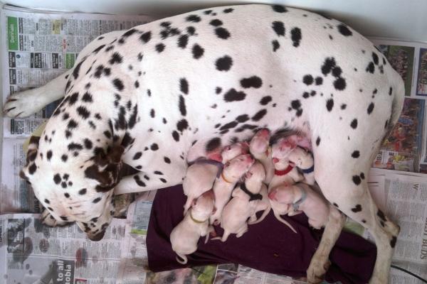 不管是斑点、杂色还是大麦町斑,都是在小狗出生以后才慢慢出现的哦~新生指示猎犬的白色部分是很干净的白,而新生的大麦町几乎是纯白的~
