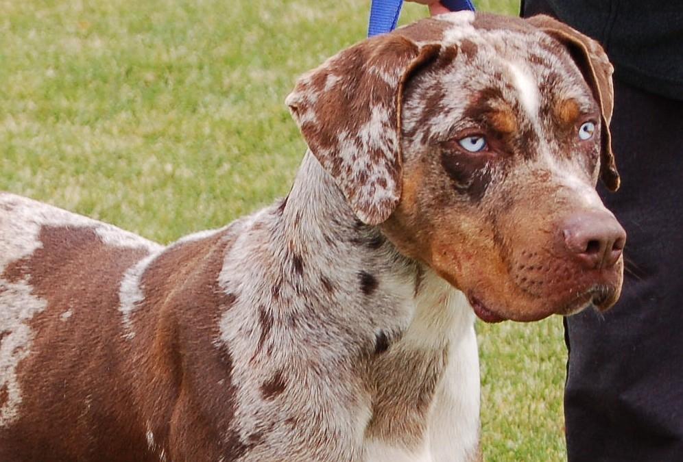 红陨(加特霍拉豹犬,这只狗狗同时具有铁包金性状,可以看到褐黑素部分没有被“陨石化”)。图源:http://imnewbieschool.com