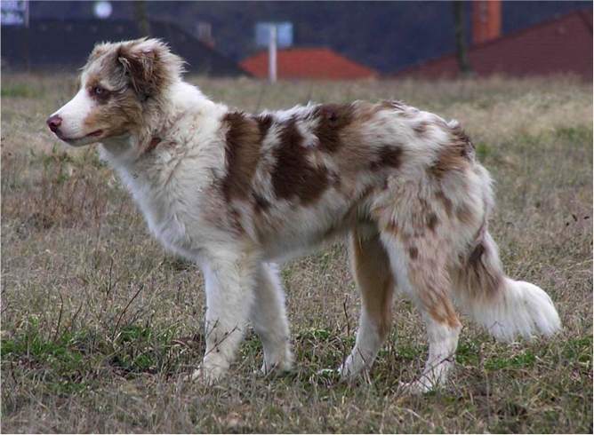 红色花陨(边牧,这只汪的真黑素是棕色的,可以看到身上呈现出不同梯度的棕)。图源:http://www.doggenetics.co.uk/index.htm