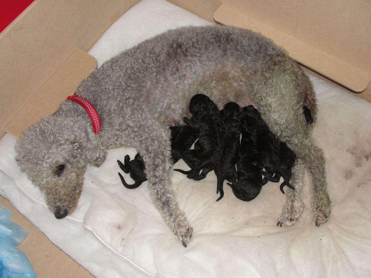 灰化现象(贝灵顿梗与幼崽)。图源:http://www.pets4homes.co.uk