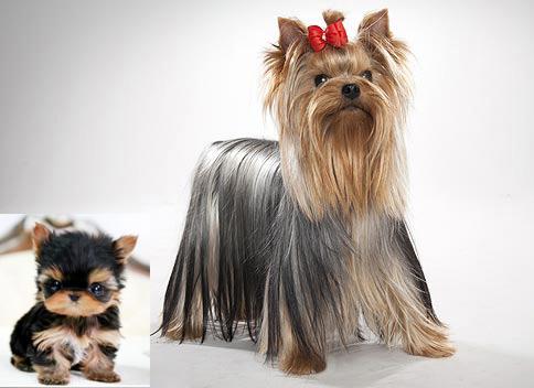 灰化现象(约克夏梗,小时候都是标准的铁包金,黑色部分逐渐变为铁灰色)。图源:http://www.animalplanet.com