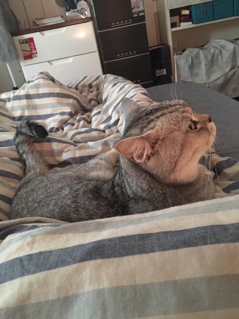 有段时间我家Butter习惯睡在我两条腿中间的那块儿被子上面,于是那段时间我由于不敢换姿势而腰酸腿疼了好久……