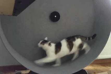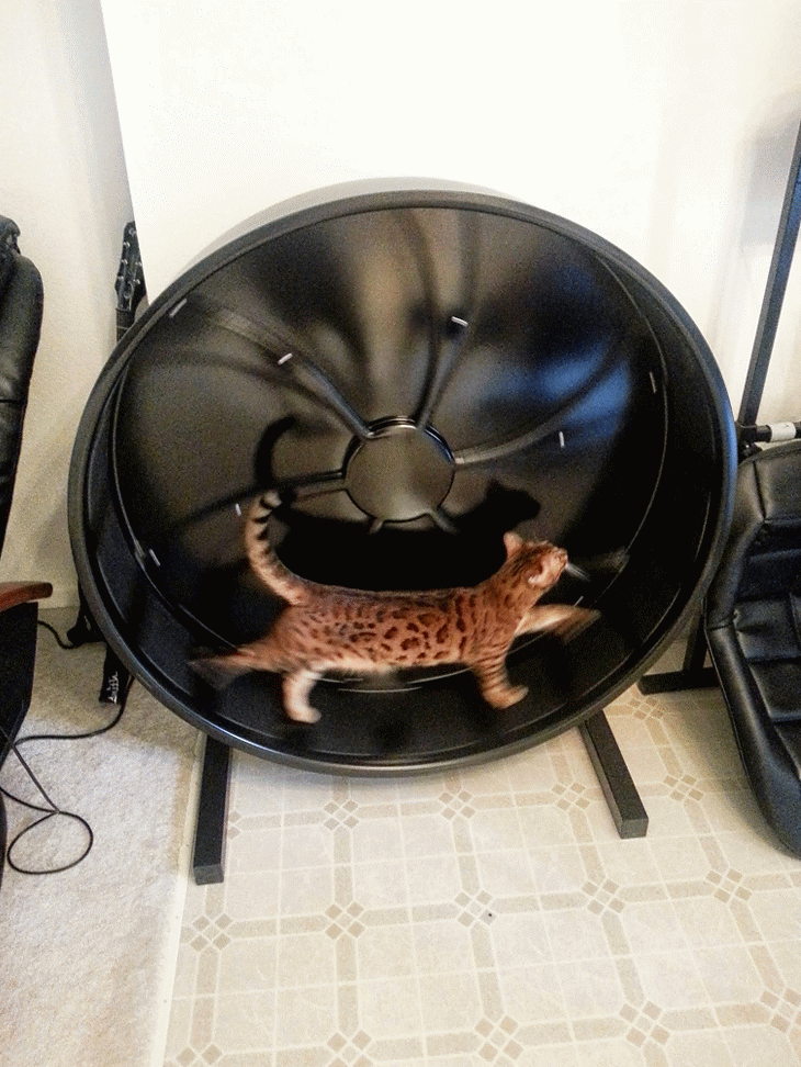 猫咪在家里运动量不够?铲屎官开了一下脑洞,设计了一个给猫咪用的跑步机。