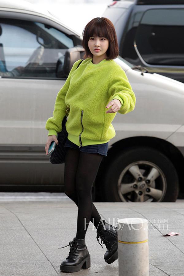 短袜+运动鞋的学院派配搭,那是为长腿妞准备的,Oversize外套则是高个妞&搭配能手才能驾驭滴,A Pink组合这位与金南珠同名的短身妹子,你显然找错人借衣服啦!