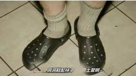 洞洞鞋是一个可以把任何有美感的look变土鳖的神器。而最让人无法直视的就是穿靴子上班,在办公室换上“舒服”的洞洞鞋,露着红色袜子去接水的行为……