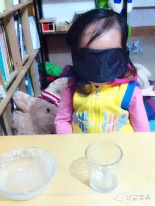 “现在我们戴上眼罩,来听听哪个是什么声音,好不好?”我给她戴上眼罩,一开始敲得声音比较大,她马上就能准确地辨别出碗与杯子声音的不同。后来,我敲的声音越来越小。她有时会分辨得比较困难。当她回答错误时,我会再多敲几遍,让她仔细分辨。