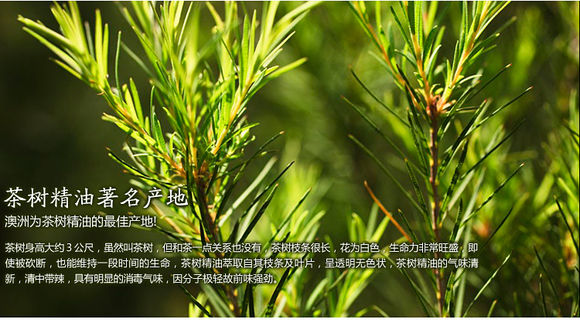 茶树精油是茶树(TeaTree)的提取物,原产于澳洲。要注意,这种茶树(TeaTree)与获取茶叶的茶树不是同一个品种,而且一丁点亲戚关系都没有!这种原产于澳洲的植物英文古字为TiTree,后因殖民者混淆读音,才有了TeaTree这个名字。