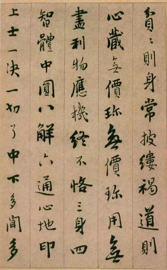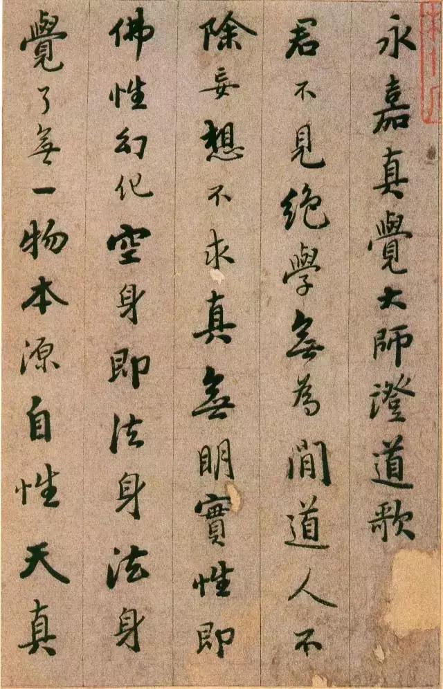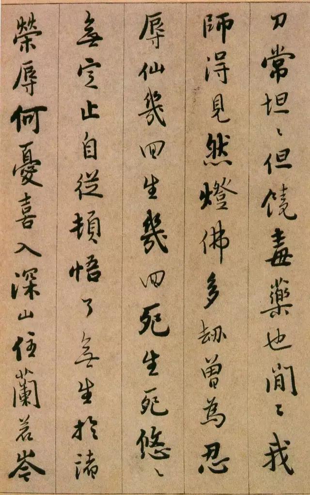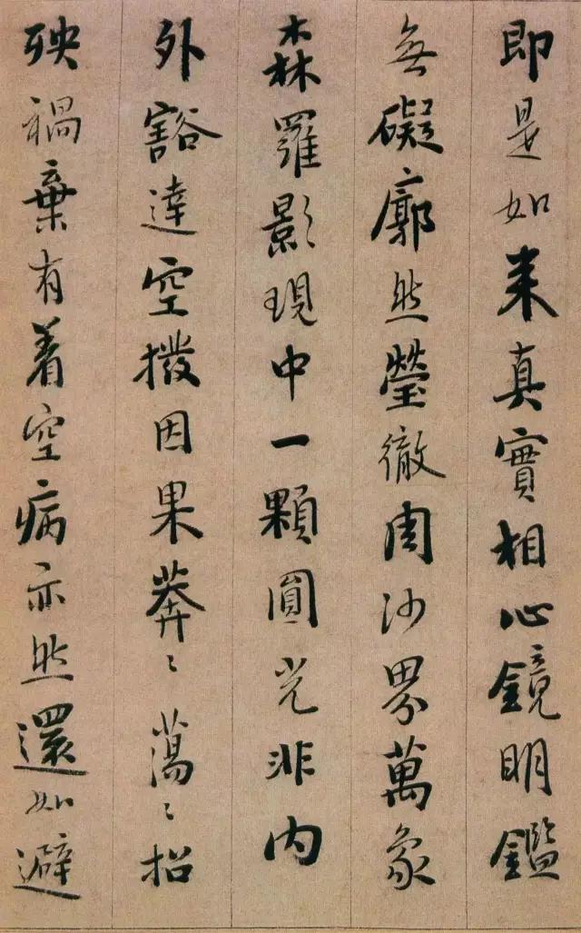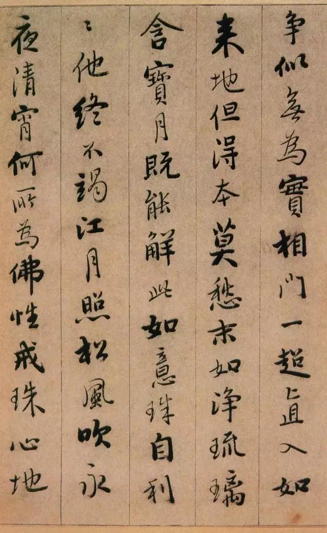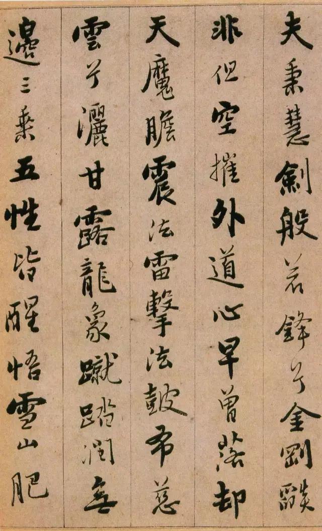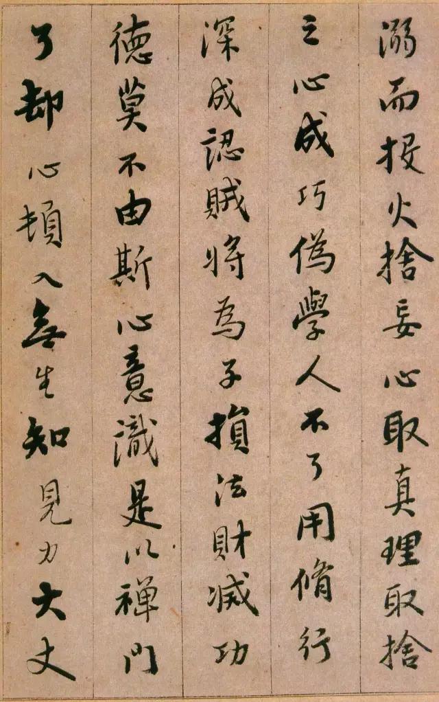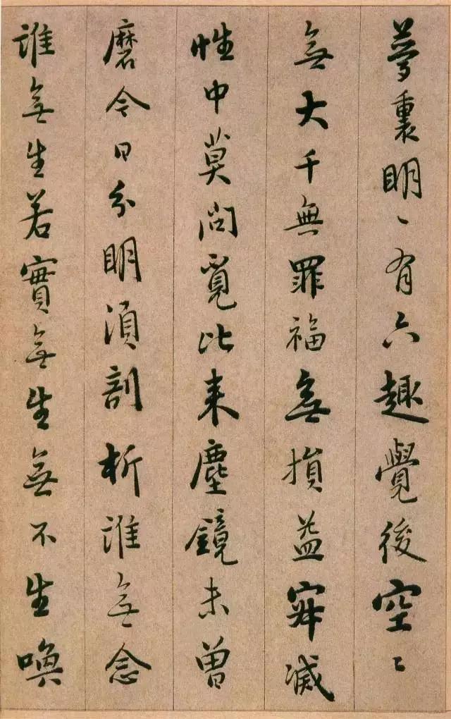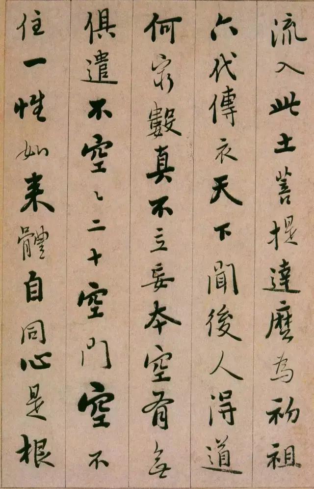 憨山《永嘉真觉大师证道歌》 ,此本内容为性理修养之说,涉佛教。写法上本于王字,不少字的结字与《圣教》相类。然取势用 笔颇有自己特色,与明末书家喜一笔顺势带下,连绵不断的行草写法迥然有别。