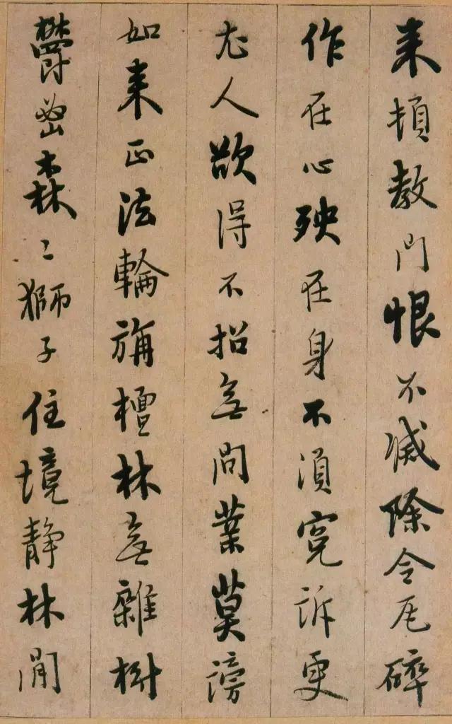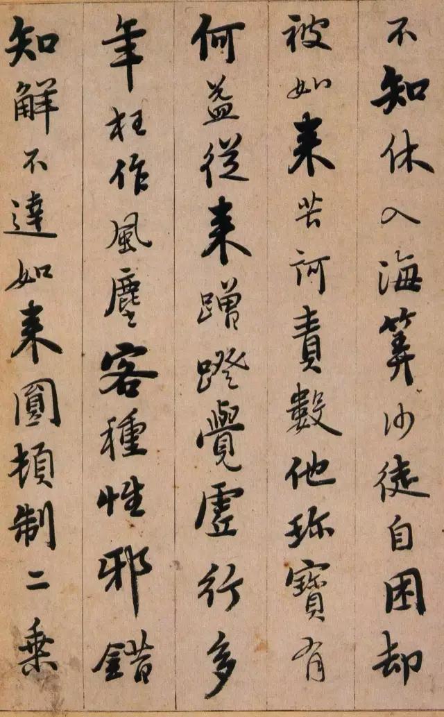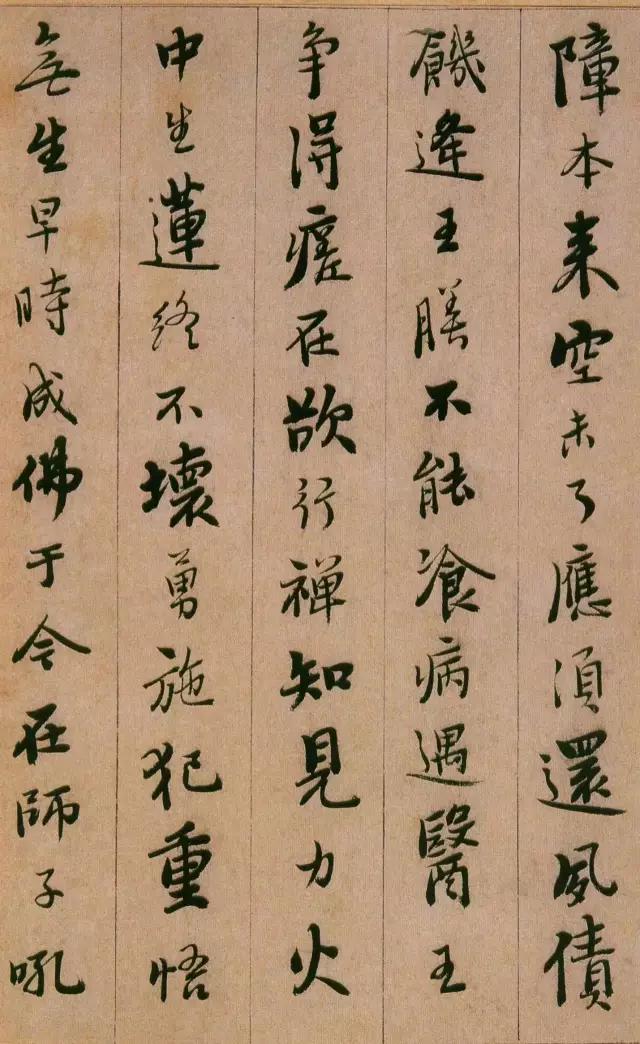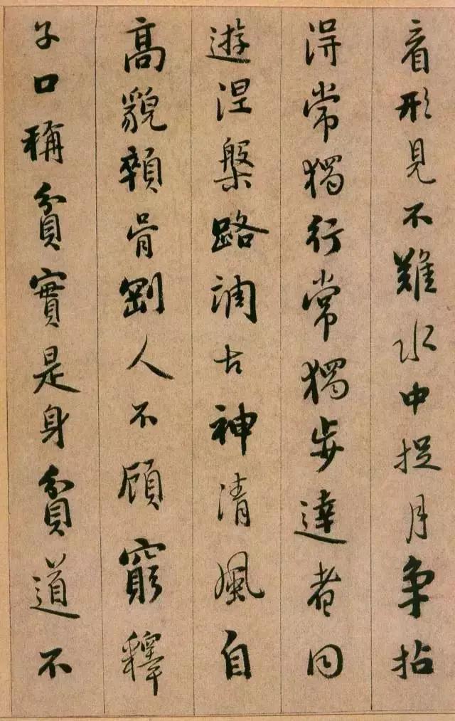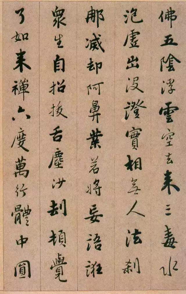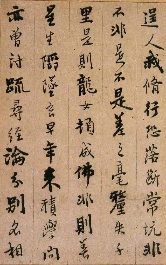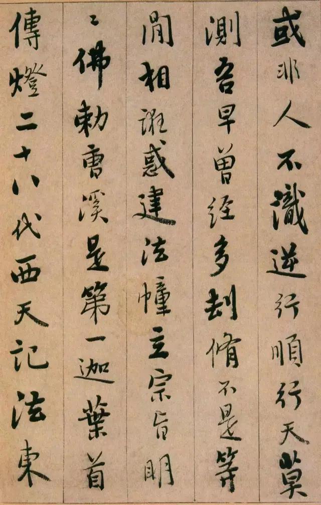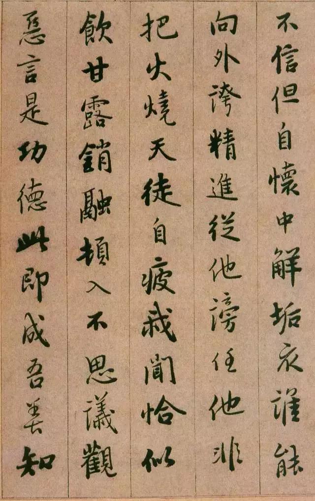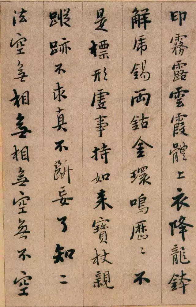 憨山《永嘉真觉大师证道歌》 ,此本内容为性理修养之说,涉佛教。写法上本于王字,不少字的结字与《圣教》相类。然取势用 笔颇有自己特色,与明末书家喜一笔顺势带下,连绵不断的行草写法迥然有别。