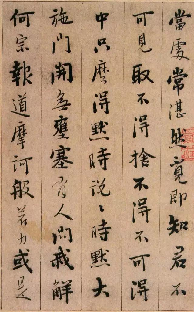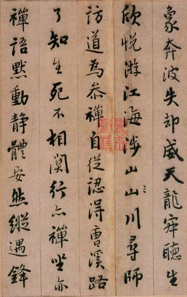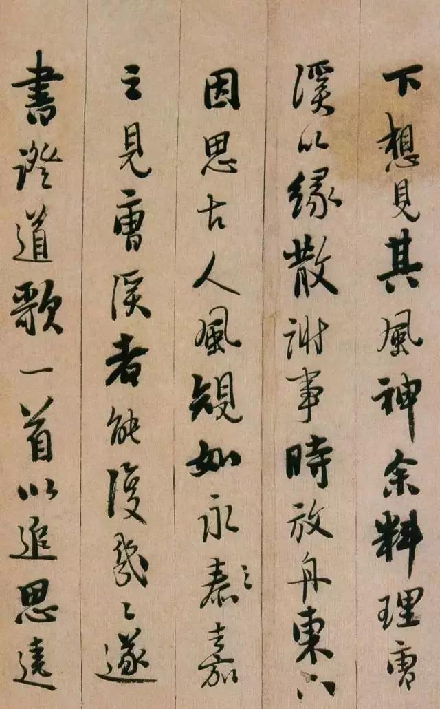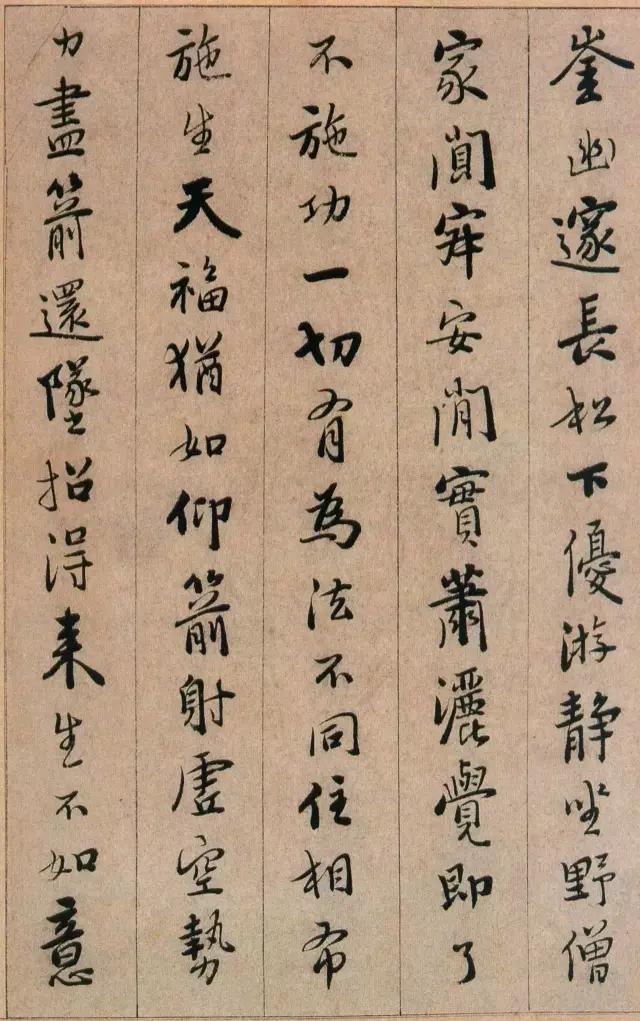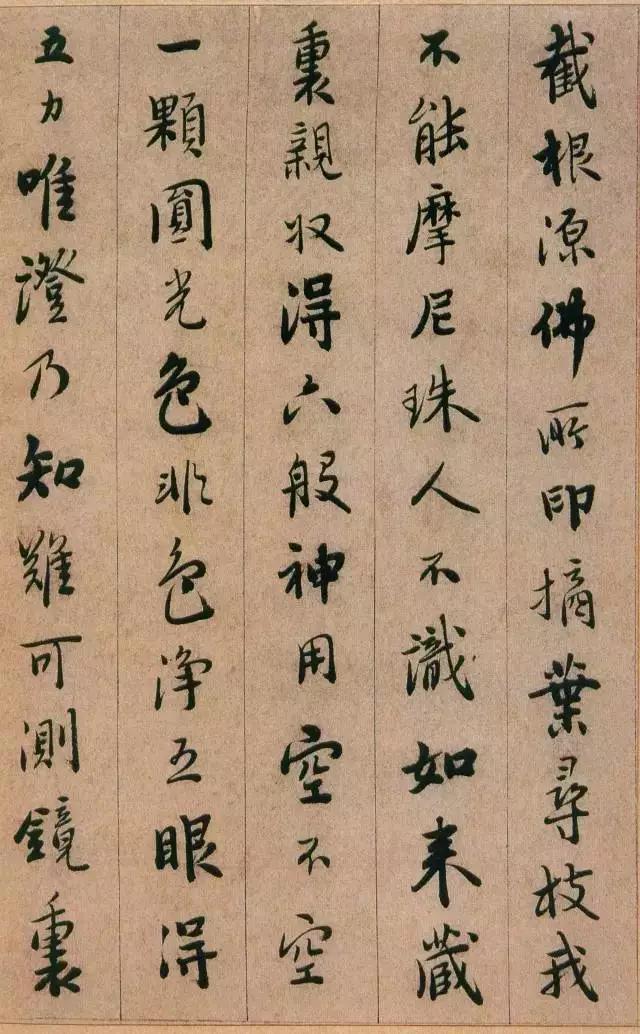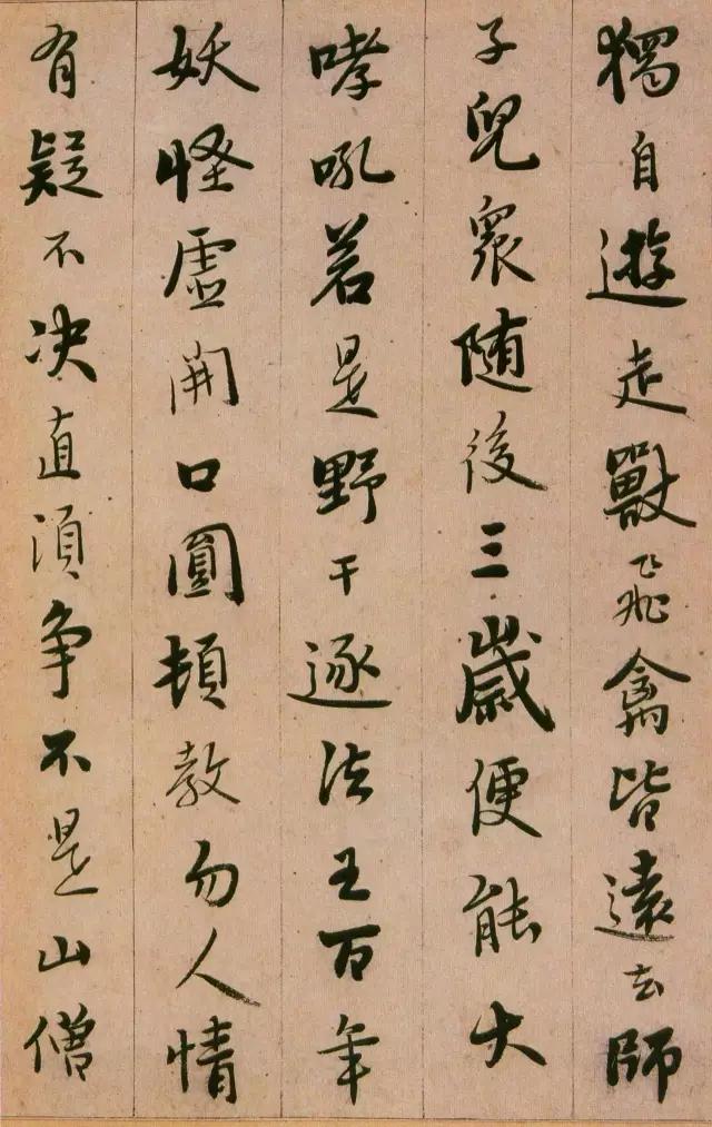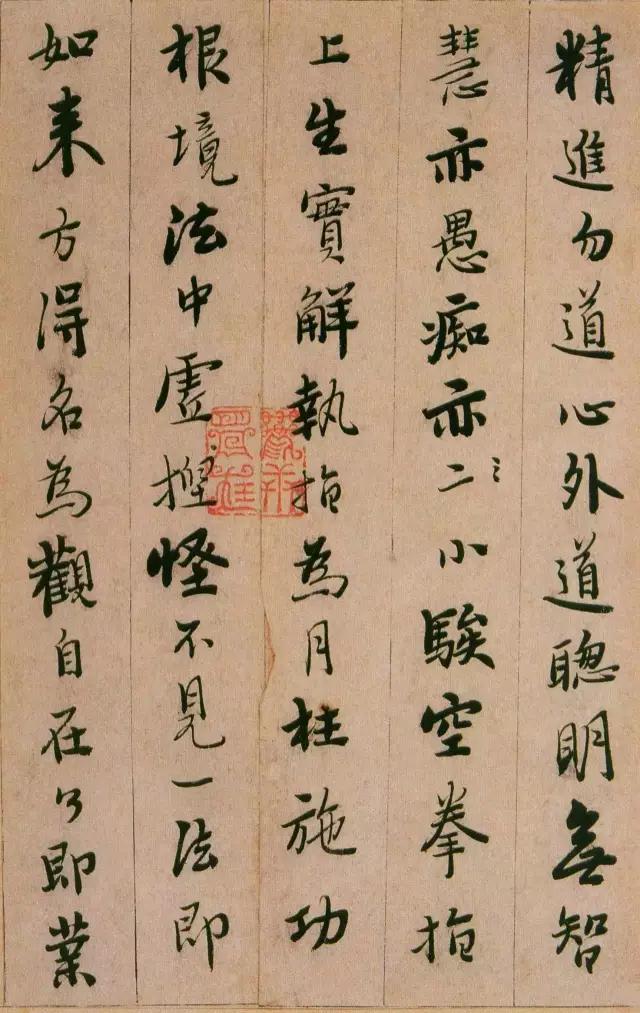 从其取法的角度看,憨山悟性极高,有聪慧之气,所以他的作品前人的影子不多,自己的个性不少,有时还善于在个别点画中以隶意出之,这在妍美的风格上掺和进了一点古拙的意味。