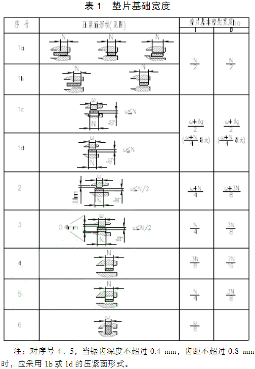 法兰密封面形式直接决定了垫片基础密封宽度。见表1。