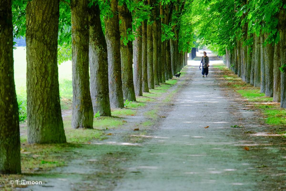 枫丹白露的深处有一大片树林,这里树木茂盛枝叶交错成一座拱门,阳光将树叶子照得透明,树林地面都是斑驳的光影,深处幽静如远古的时代。当地人可以自由自在的在昔日皇家园林里散步遛狗健身,这环境着实让人羡慕了。