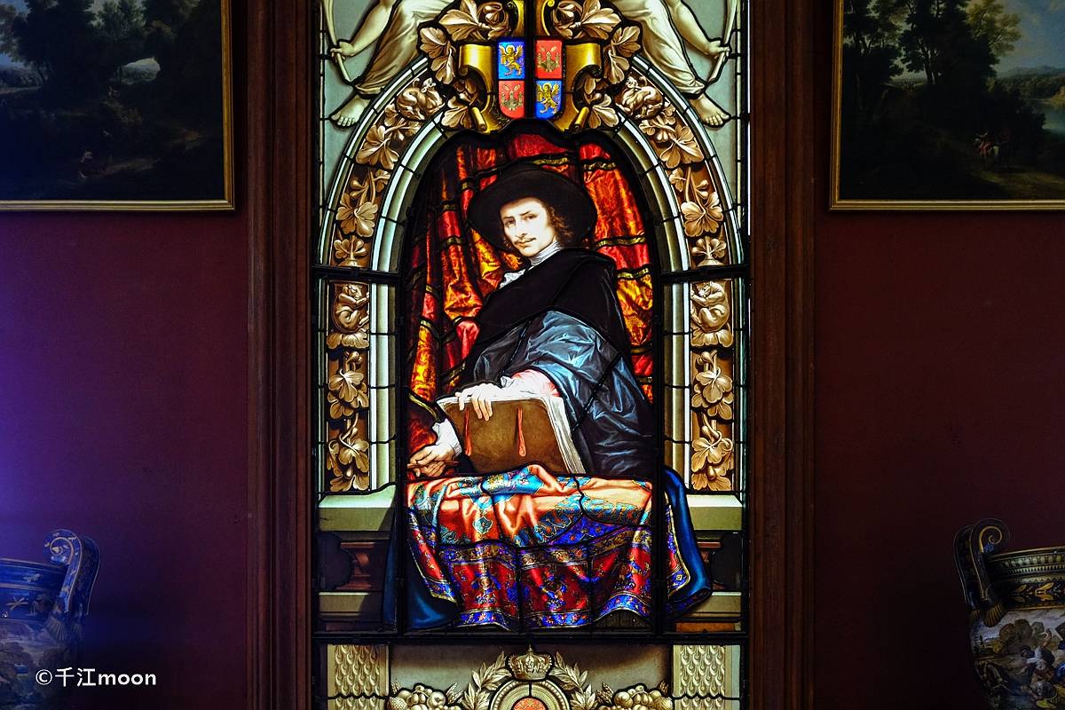 宫殿里有一幅彩色玻璃窗,是拿破仑三世的侧影肖像画。画面中整个人物造型利用阴影比例增加了立体效果,衣物的面料质感褶皱光影惟妙惟肖。尤其是自然下垂的彩绸,很像一块丝绸真的垂在那里一样,让人有触摸一下的冲动。这样的彩窗玻璃画达到了油画摄影的双重效果,给我留下了深刻的印象。