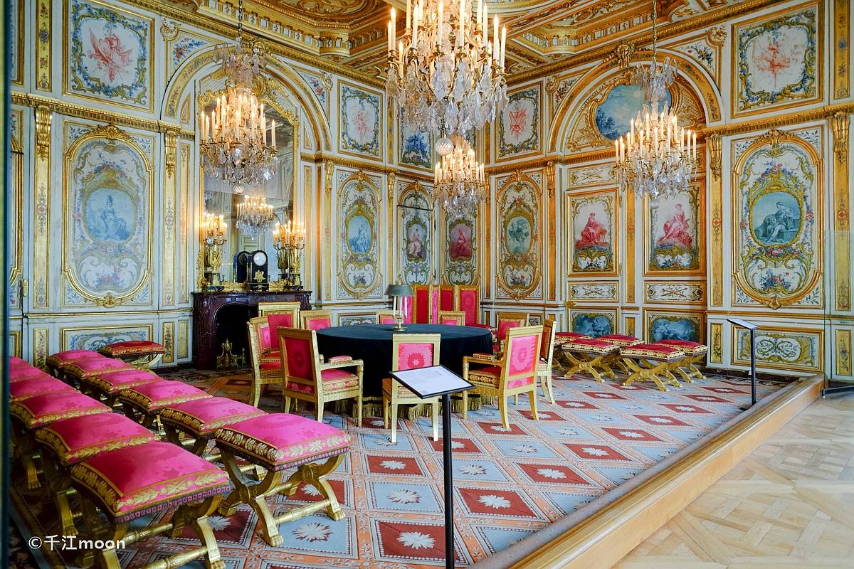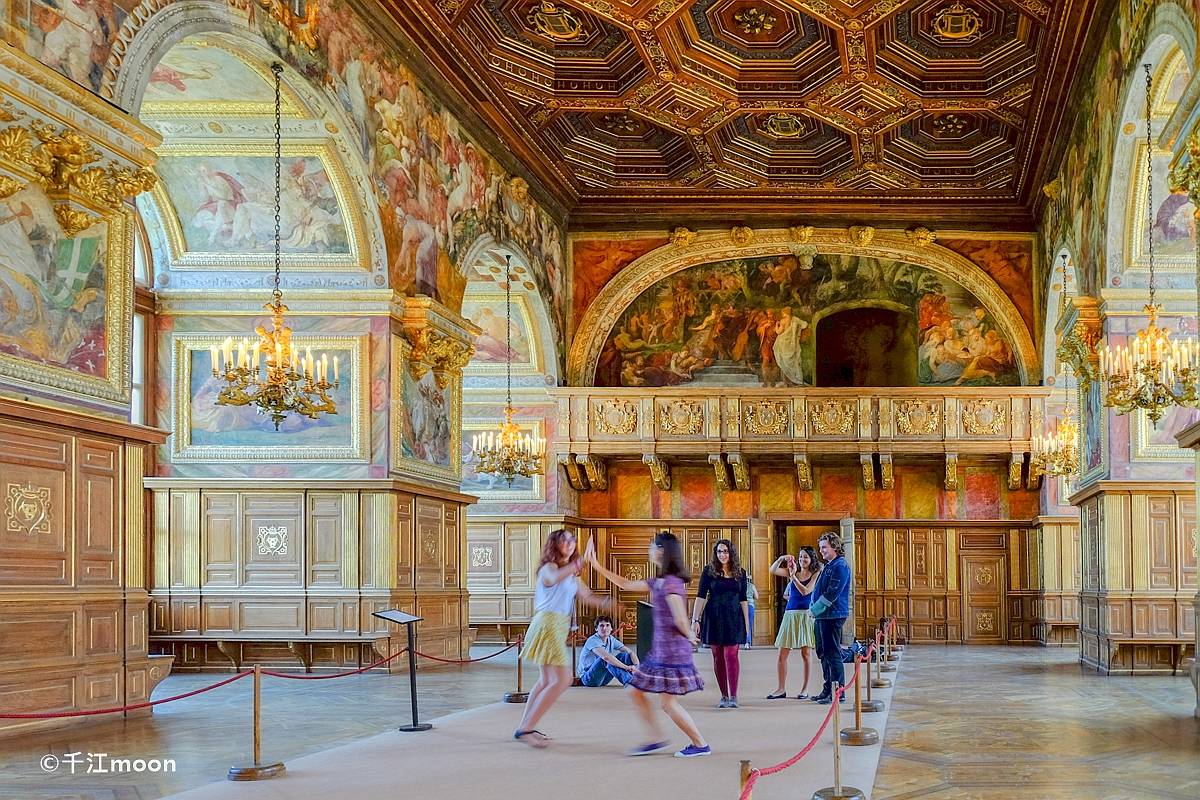 到了售票处才发现,中国文物馆闭馆,工作人员也不知道什么时候再开馆。只能再一次被法国人的不靠谱而坑了,因为来之前在官网上查过,并无闭馆的信息。不过,”来都来了“,还是乖乖的掏出银子买票参观。枫丹白露宫有1500个房间之多,想象中的豪华奢靡纸醉金迷都在这里,实在令人眼花缭乱,只挑挑我印象深刻的几个地方说说。