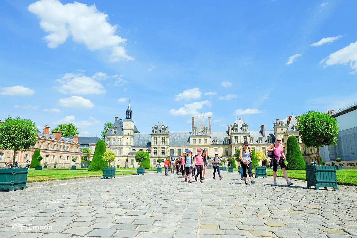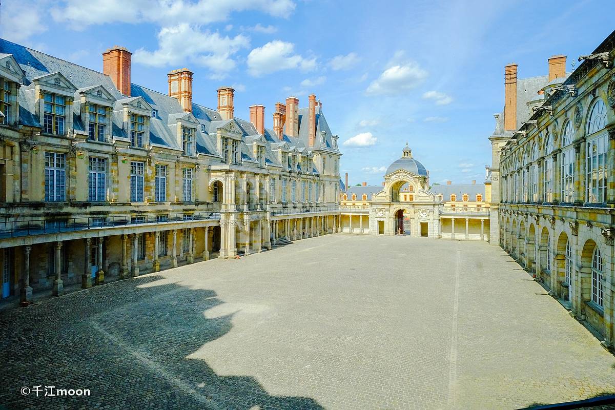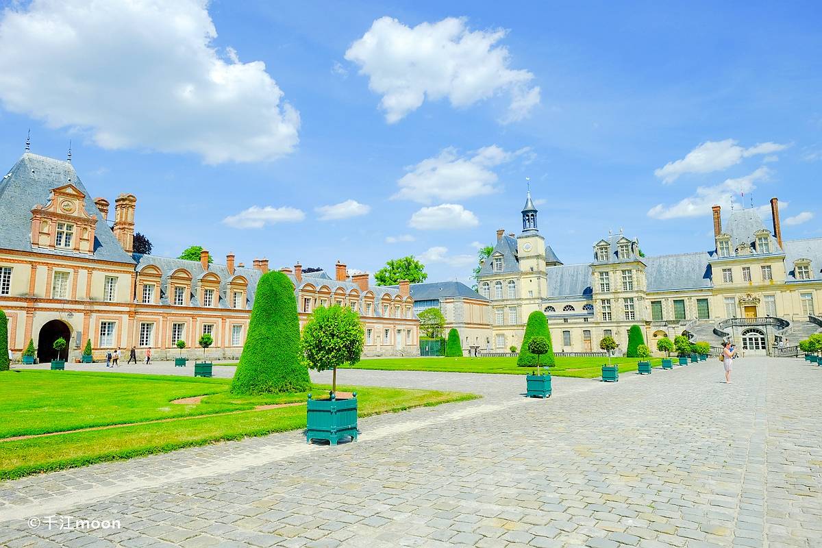 枫丹白露宫历史悠久,最初是1137年法王路易七世时开始兴建狩猎用的行宫,后经历代君王的改建扩建,成为一座富丽堂皇的宫殿。步入枫丹白露宫大门,便是方石铺地的白马庭院,长152米宽112米,以四片方型草地分隔。草地的四角都有修成圆锥形的灌木,非常工整讲究,是典型法国皇家园林的装饰。