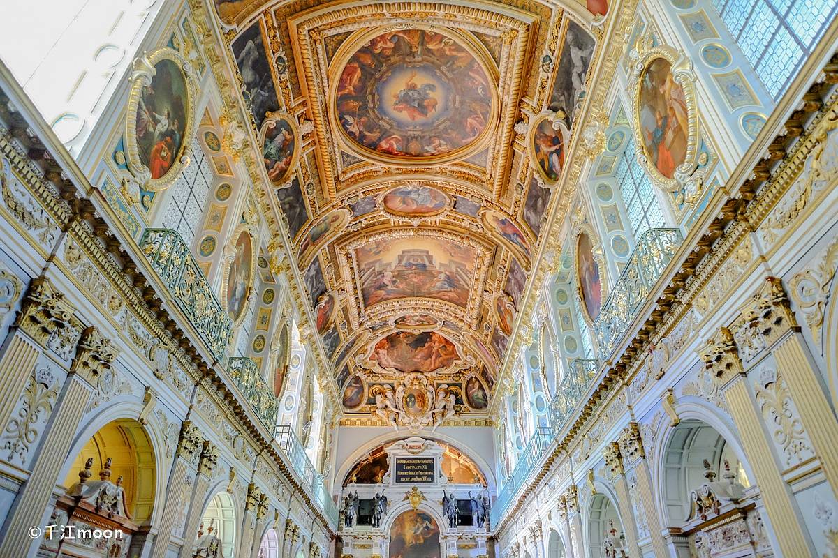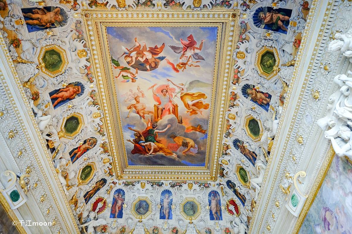 总之整个宫殿都是非常精美的法国宫廷风,就连一个楼梯间的天花板都被绘画和雕塑装饰的美轮美奂。