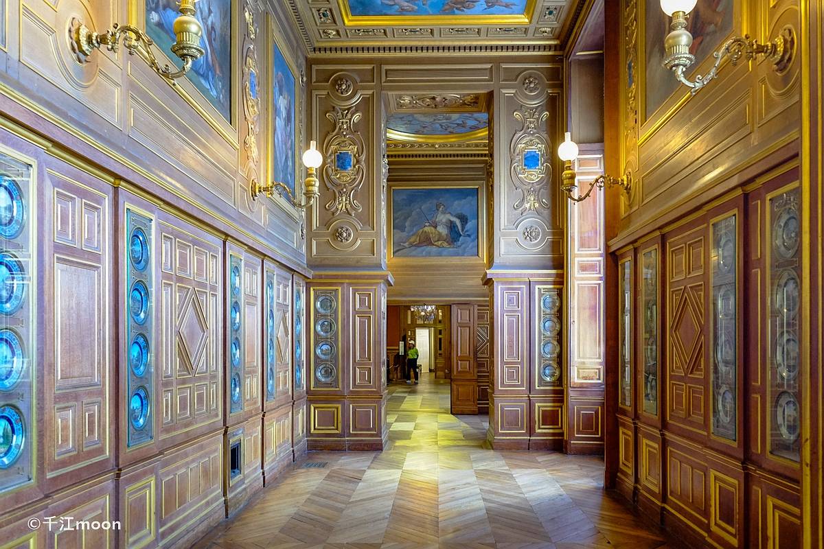 磁盘廊是法国19世纪七月王朝时期的国王路易·菲利普所建造,有128个磁盘镶嵌两侧墙壁,讲述枫丹白露不同时期的历史故事。
