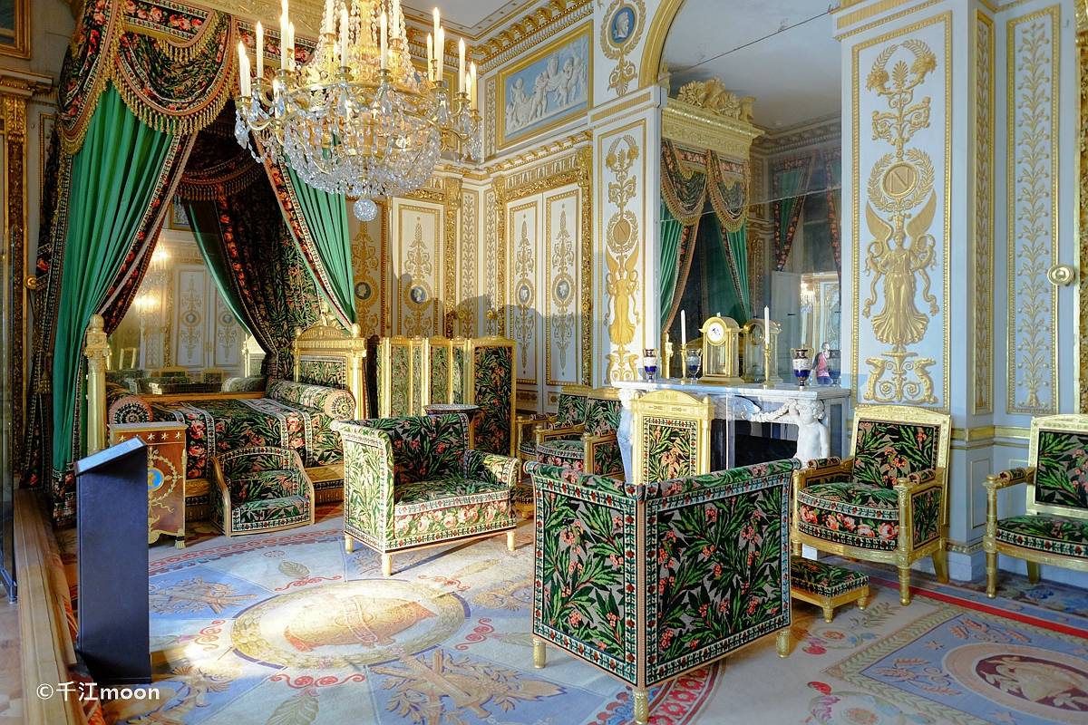 自亨利四世至路易十六,所有的君主都在国王寝宫就寝,而拿破仑一世登基后重新装饰,拿破仑卧室的风格和约瑟芬皇后的卧室风格还是很搭配的,都是以黄绿白三色为主基调。