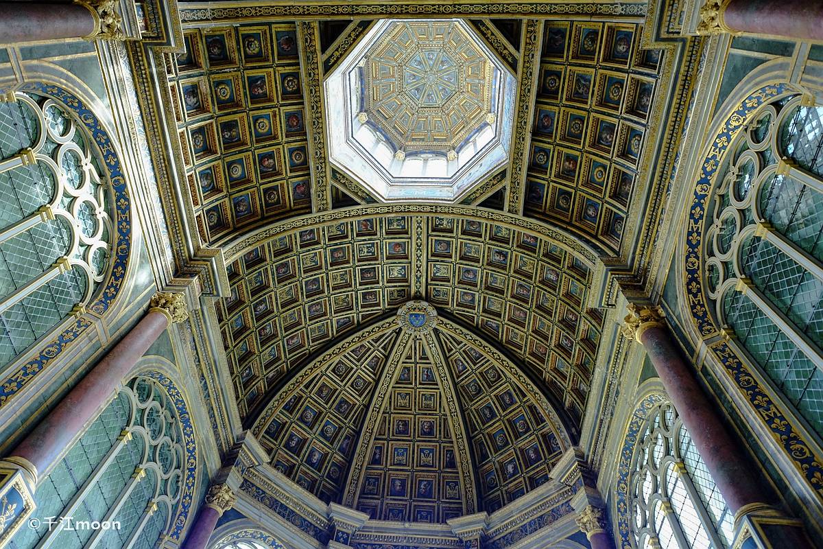 舞会大厅有着如同教堂的高大穹顶,它的格子天顶来自意大利教堂的灵感,密密麻麻的格子里有很多人头像。