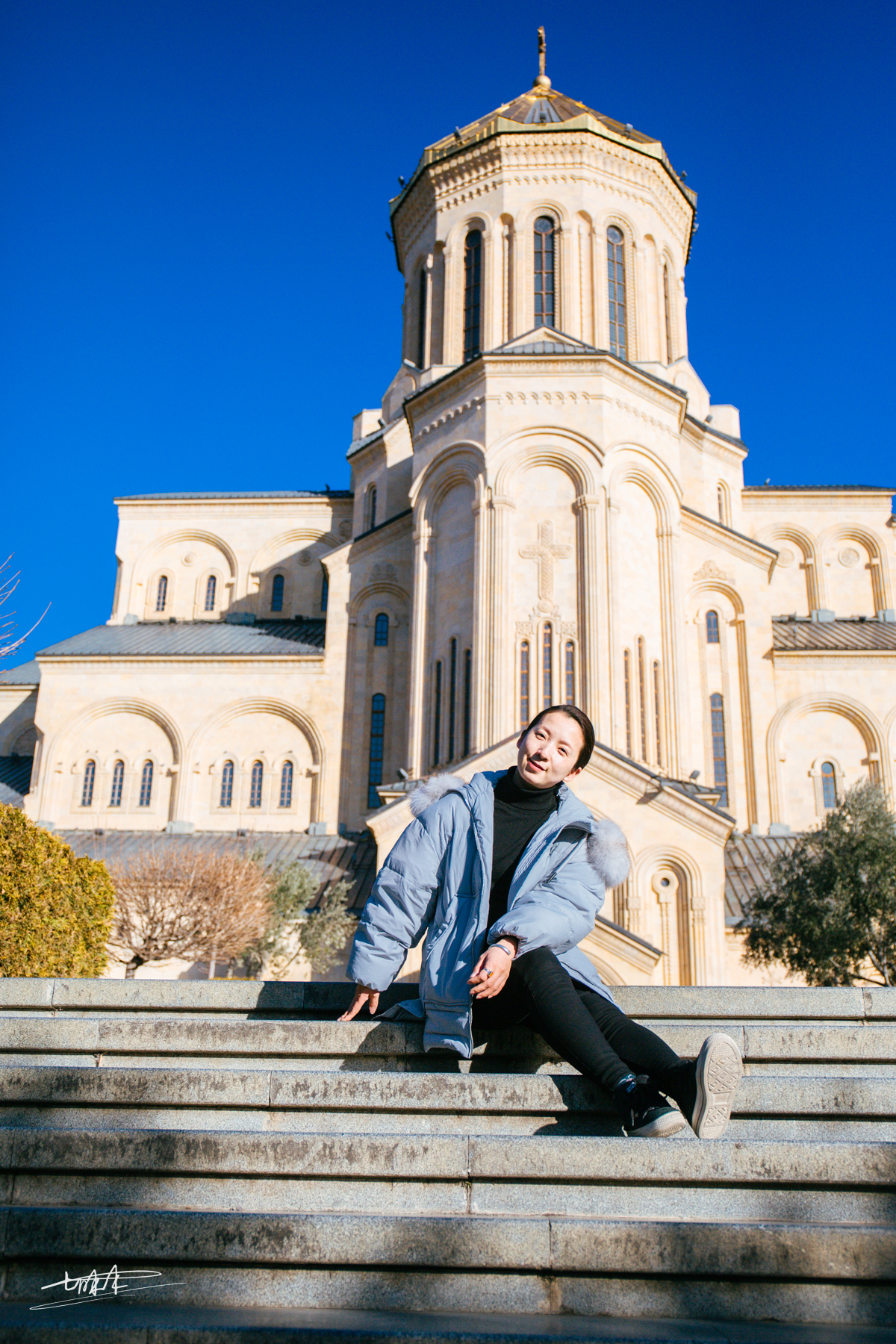 圣三一大教堂建在Elia山上,这座山位于古老的Avlabari街区,库拉河左岸上方。由于前一晚去的时间不巧,没有看到夜景,非常遗憾,于是第二天上午无论如何也要安排上。