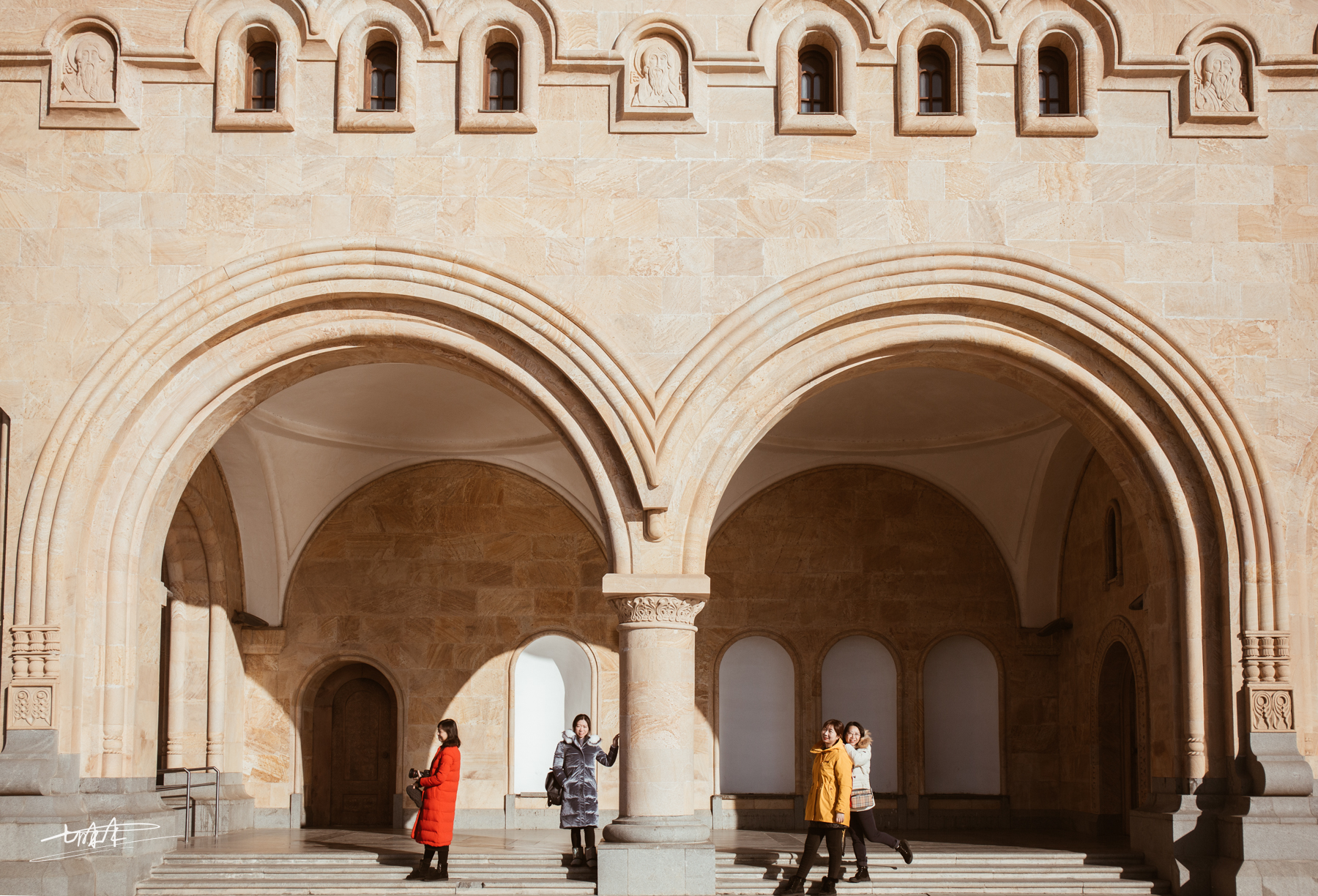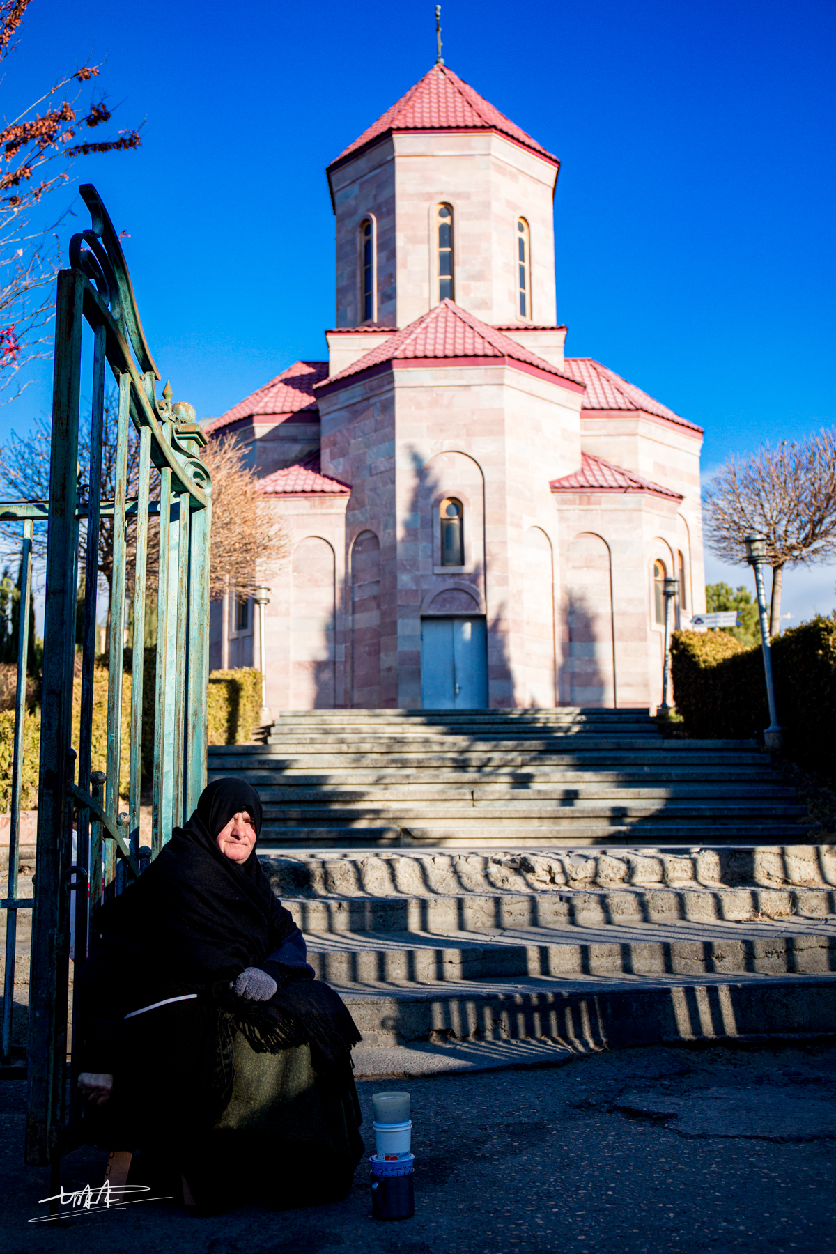 司机没有把我们带到正门,我们是从一旁的小门进去的。冬日的凌冽的寒风下,教堂门口坐在一位乞讨者,表情非常平静,面对往来的游客没有一丝变化。她们面前地上摆放着罐子,不死乞白赖地纠缠或奴颜婢膝地磕头。