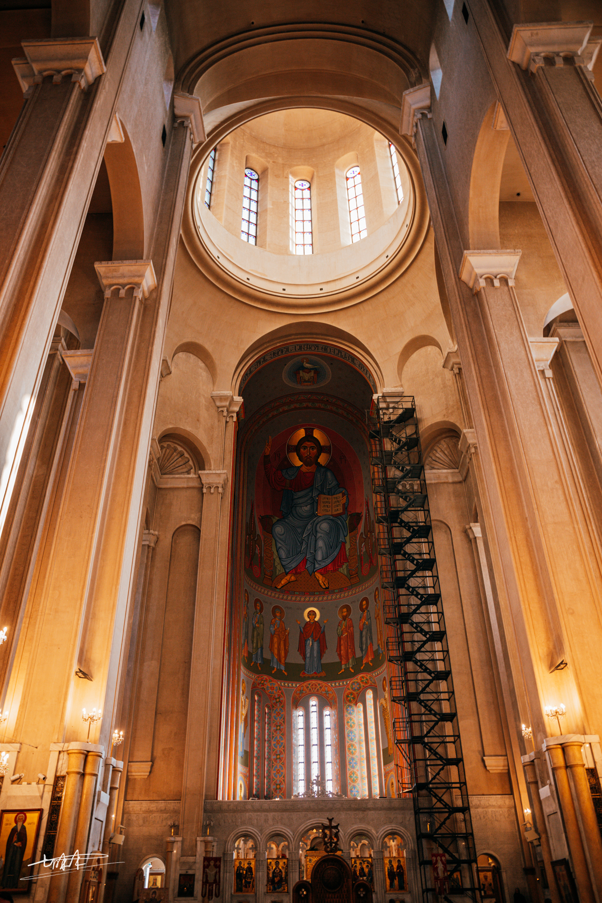 建筑恢弘大气,庄严雄伟,室内地面铺就着大理石砖,祭坛也用马赛克瓷砖装饰,每个细节都体现了这个教堂的地位和意义。壁画则由Amiran Goglidze指导的一群艺术家执行。