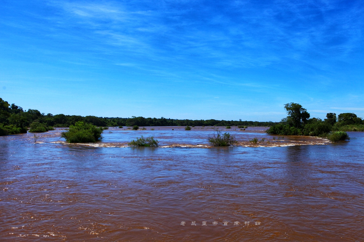 伊瓜苏瀑布的出现是因为伊瓜苏河的存在。这条河流发源于巴西南部,穿过维多利亚山口后,以雷霆万钧之势朝巴西和阿根廷交界的平原奔腾。突然受到阿古斯丁岛的阻滞后,水流渐缓,河道铺宽达3公里,形成一个水深仅1米左右的湖面。