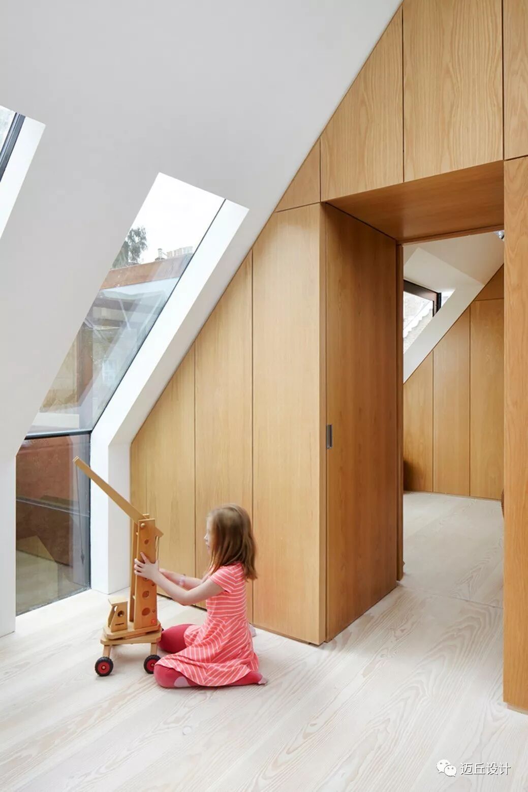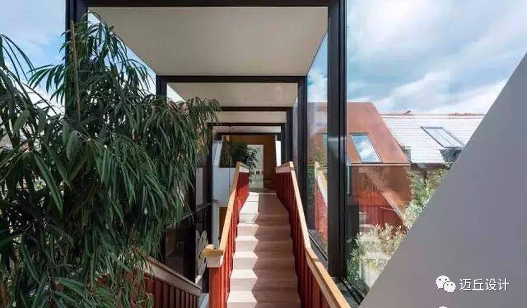 简单的方案将受限的场地最大化的利用,将建筑减小为街道的尺度,也与家庭的生活方式相契合。两个长方形的部分都在一楼是起居空间,二楼是卧室。两者用一个玻璃交通空间相连,让阳光充满建筑和庭院。https://mmbiz.qpic.cn/mmbiz_jpg/ZTGf9dVuU9DYdfGMfu3wFlZWsZB57Zicn93eX4CdI9hibSibbhzU1qtV5spicia4yHziaEkcnt8cTs6hDwmqvpwOHpfQ/?wx_fmt=jpeg