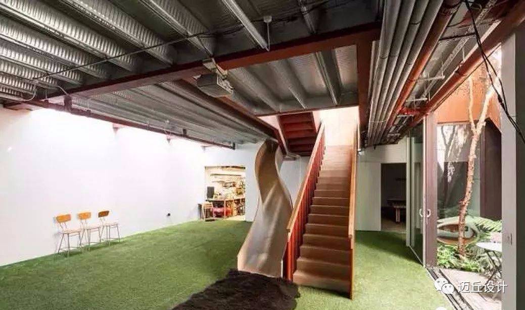 建一间游乐室是女主人的主意,地面铺了”草坪“,还有两个进入的通道,一个是楼梯,一个是滑梯。