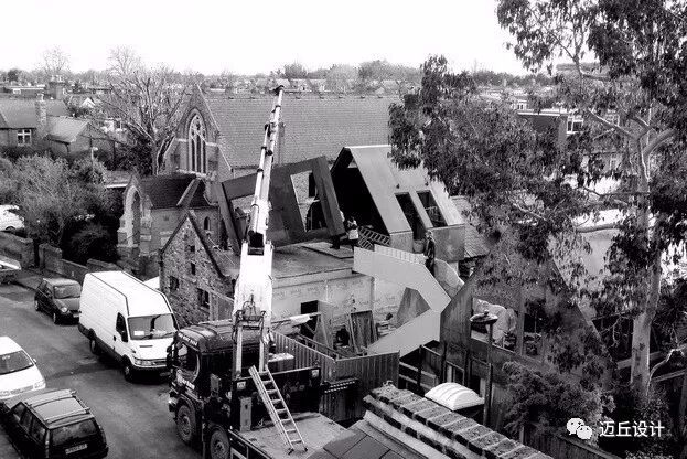 建筑具有四个卧室,有两个预制钢制体量插入旧有19世纪墙壁构成。这座建筑首先是一个家庭住宅,具有非正式的气氛和让人意想不到的空间,灯光和复杂的垂直体量。