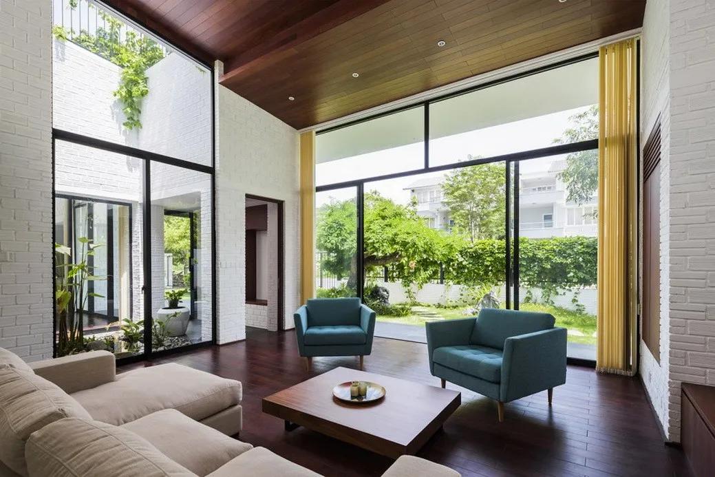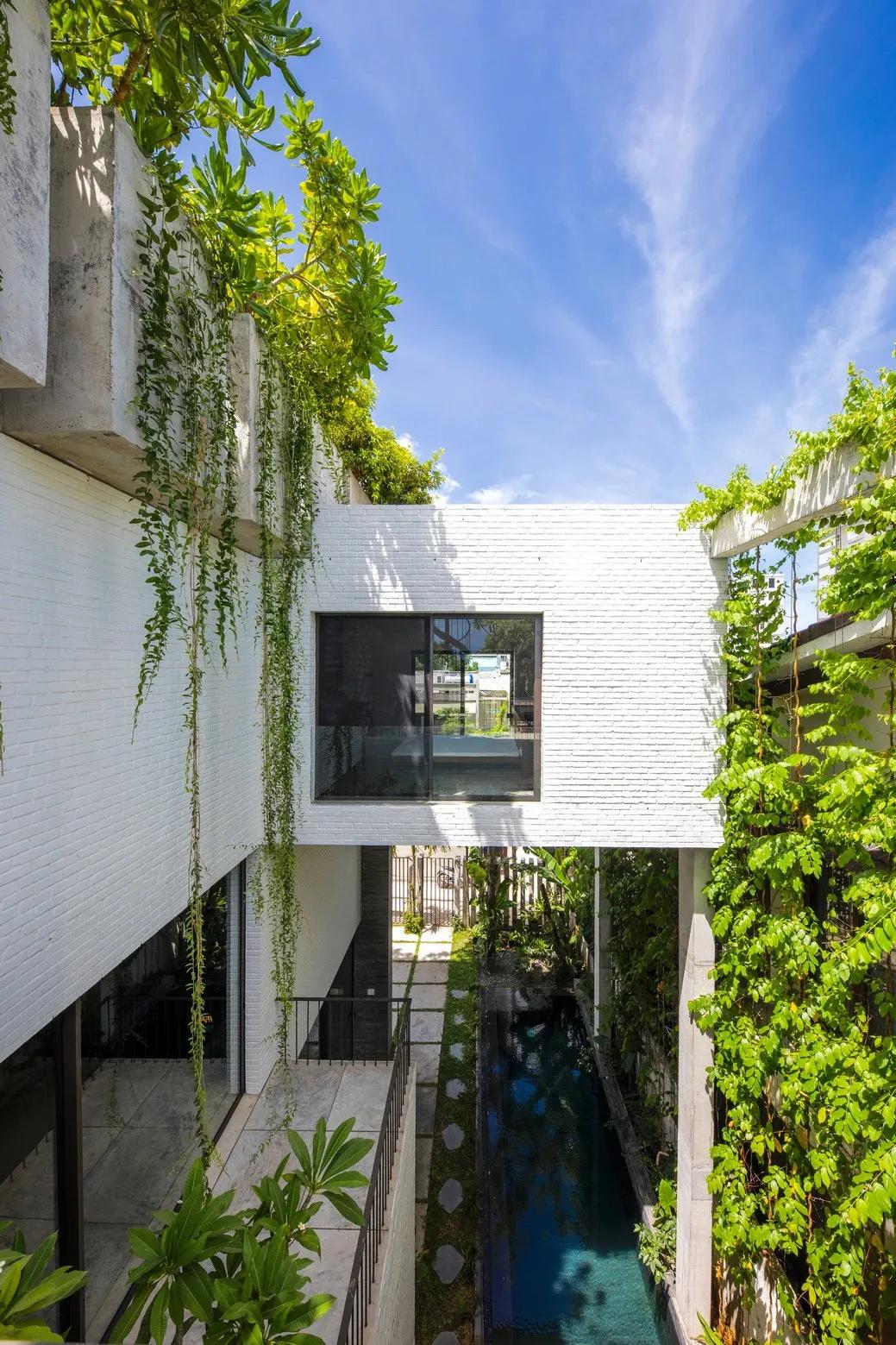基于越南常年独特的高温潮湿气候特征结合自身海外所获得的建筑学知识,武重义将水冷和风冷等被动式策略良好的运用于建筑设计中,通透的建筑即使在越南这种气候背景下也能有效的降低了因空调和照明等带来的建筑能耗。