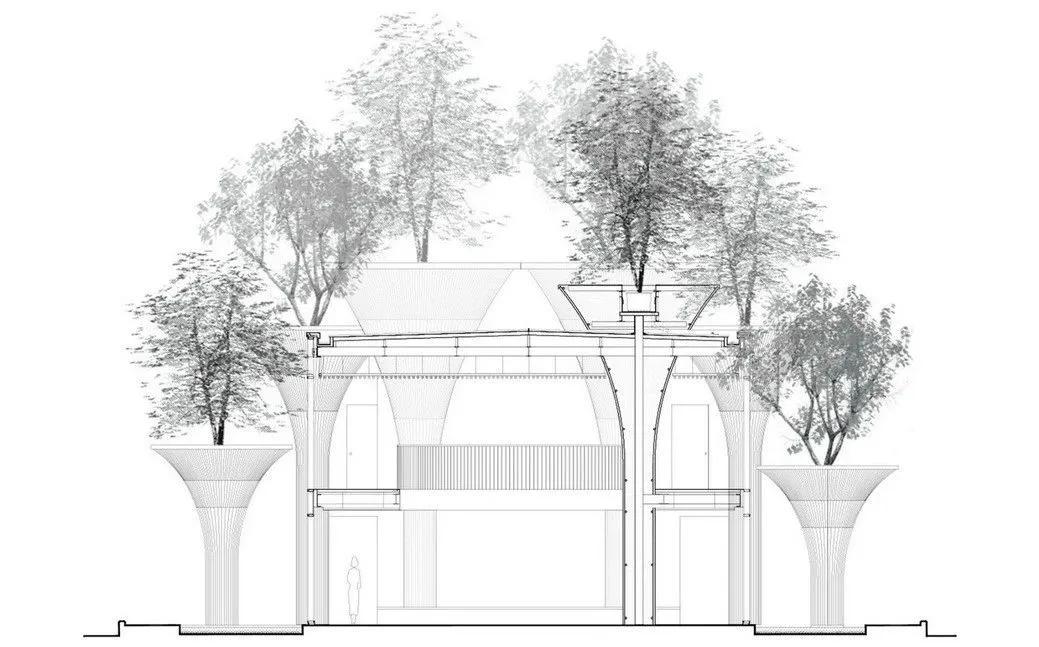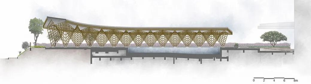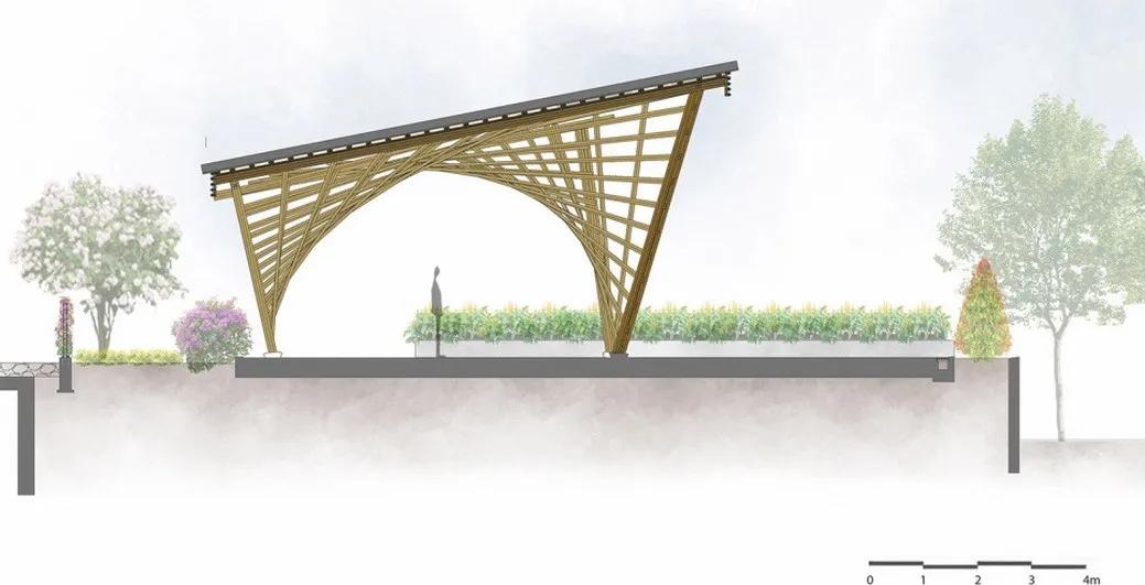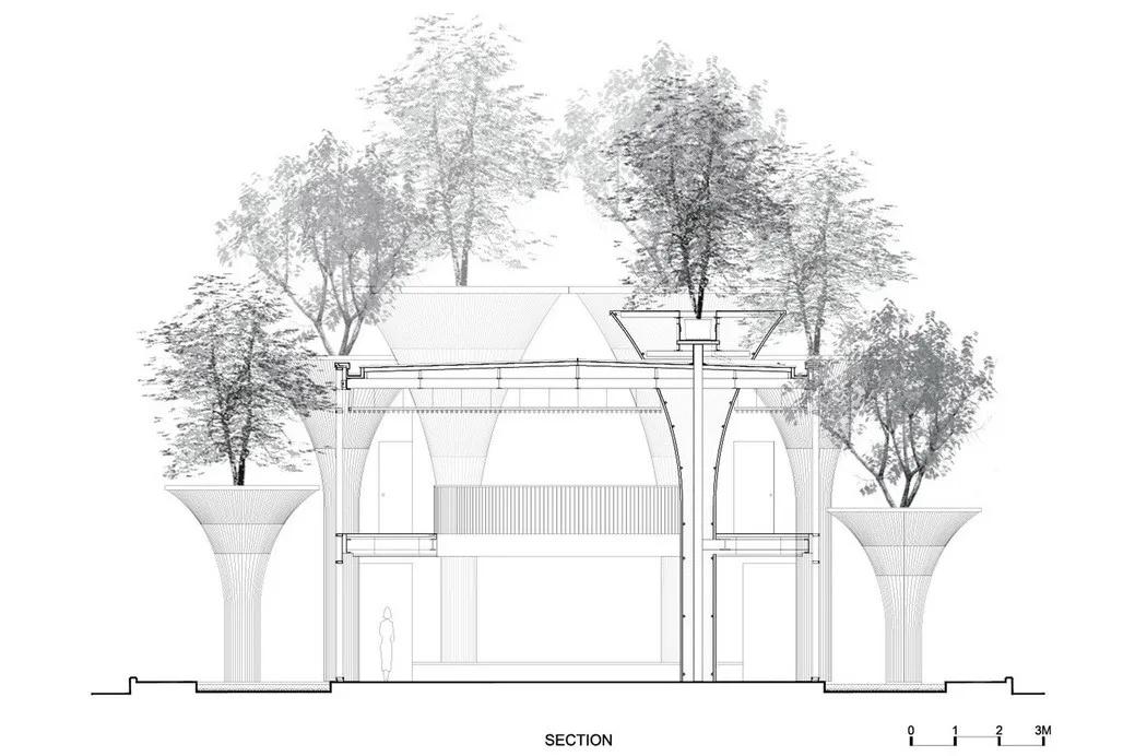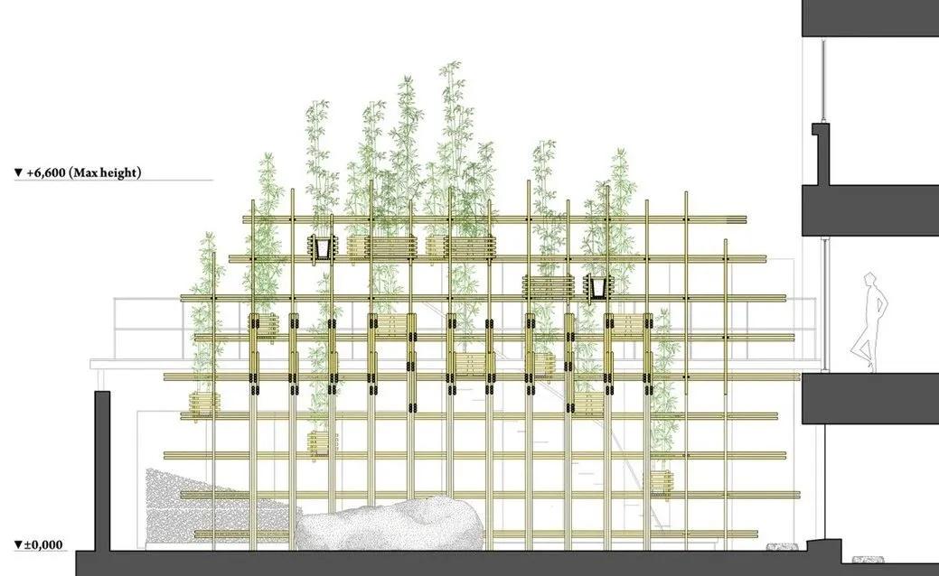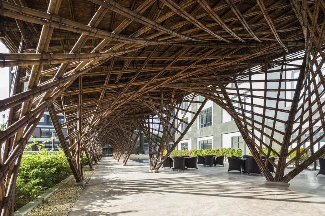尽管项目采用了传统的建造方式,但是设计师的目的并不是要重塑传统语境,而是要设计出符合时代特征的可持续建筑。 为此, 系统化竹子生产施工体系显得尤为重要,也是的这个项目成为传统民间艺术与现代建筑的融合的优秀实践。