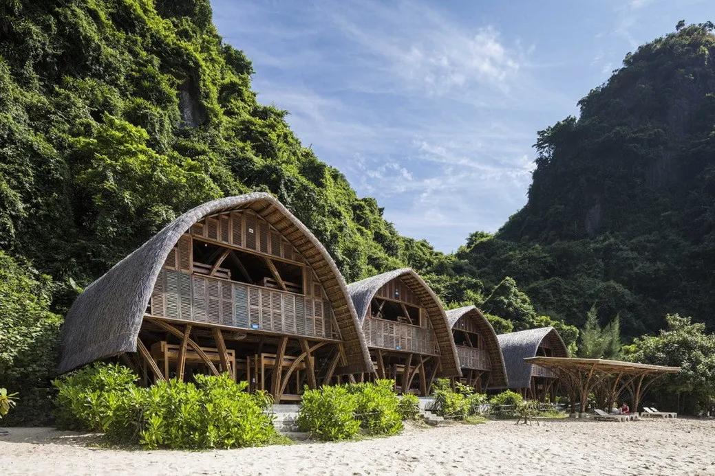 武重义设计团队在项目中一贯使用竹子进行建造,可以在不影响所处的美丽海湾的情况下很方便的集成建造和后期拆除。 竹结构被茅草屋顶覆盖,为人们带来真实的越南文化体验,消减对环境的影响。