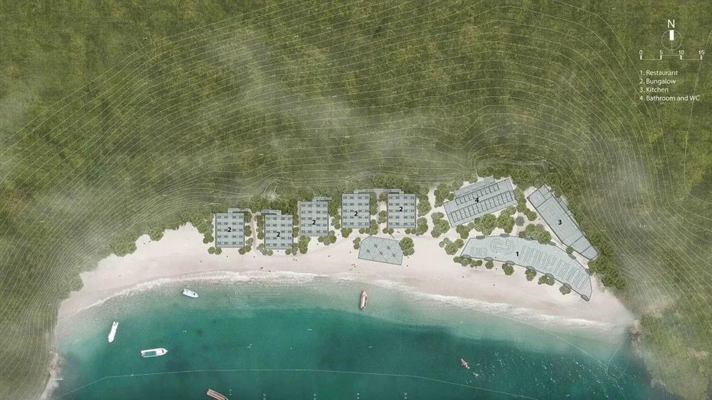 由武重义建筑事务所设计完成的大型项目坐落在由八十座小屋,一座酒店,六栋贵宾别墅和二十栋别墅组成的3公顷大小的区域内,致力于 利用自然和环境为游客提供一处放松和修养身心的空间。园区内大部分设施 都运用竹子、绿植和石材相互搭配塑造,并呈现出连贯和谐的样貌。