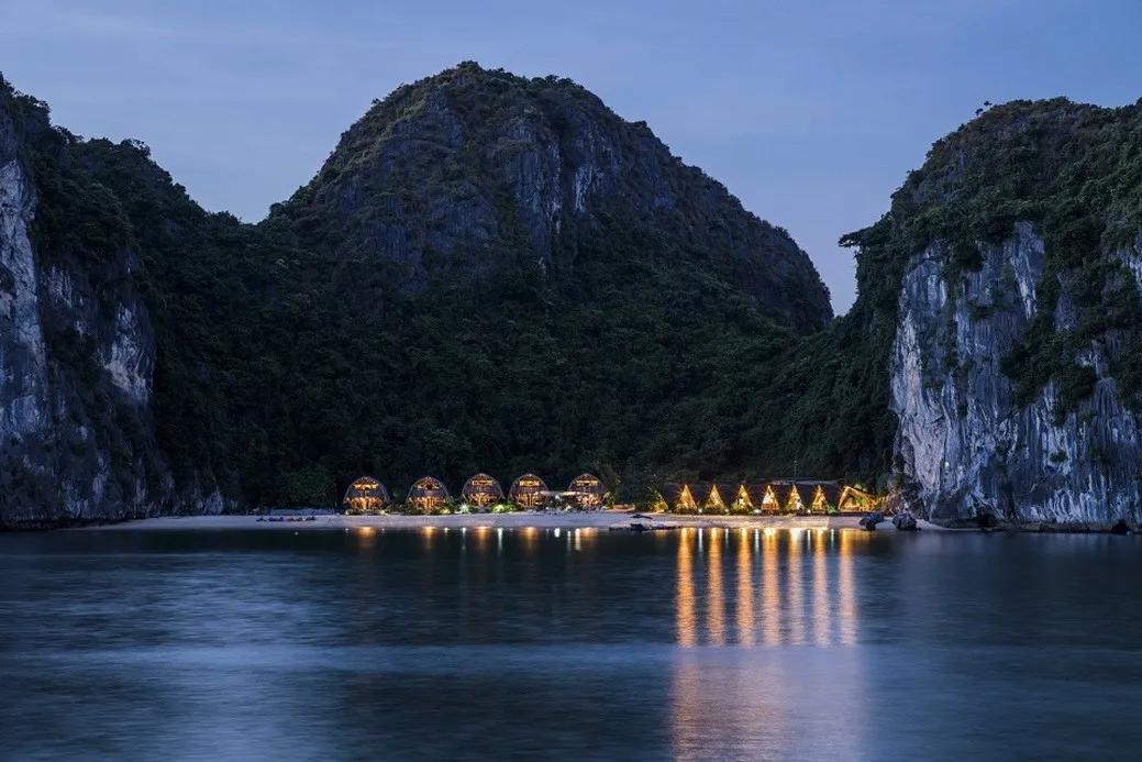 漂流岛度假村坐落于越南著名旅游胜地吉婆群岛中一座美丽的小岛上,建筑体处于一片大约3000平方米的私人沙滩上,一侧是绵延的壮美山脉,另一侧是广阔的白色沙滩。 设计的目的在于让客人沉浸在大自然的怀抱中。