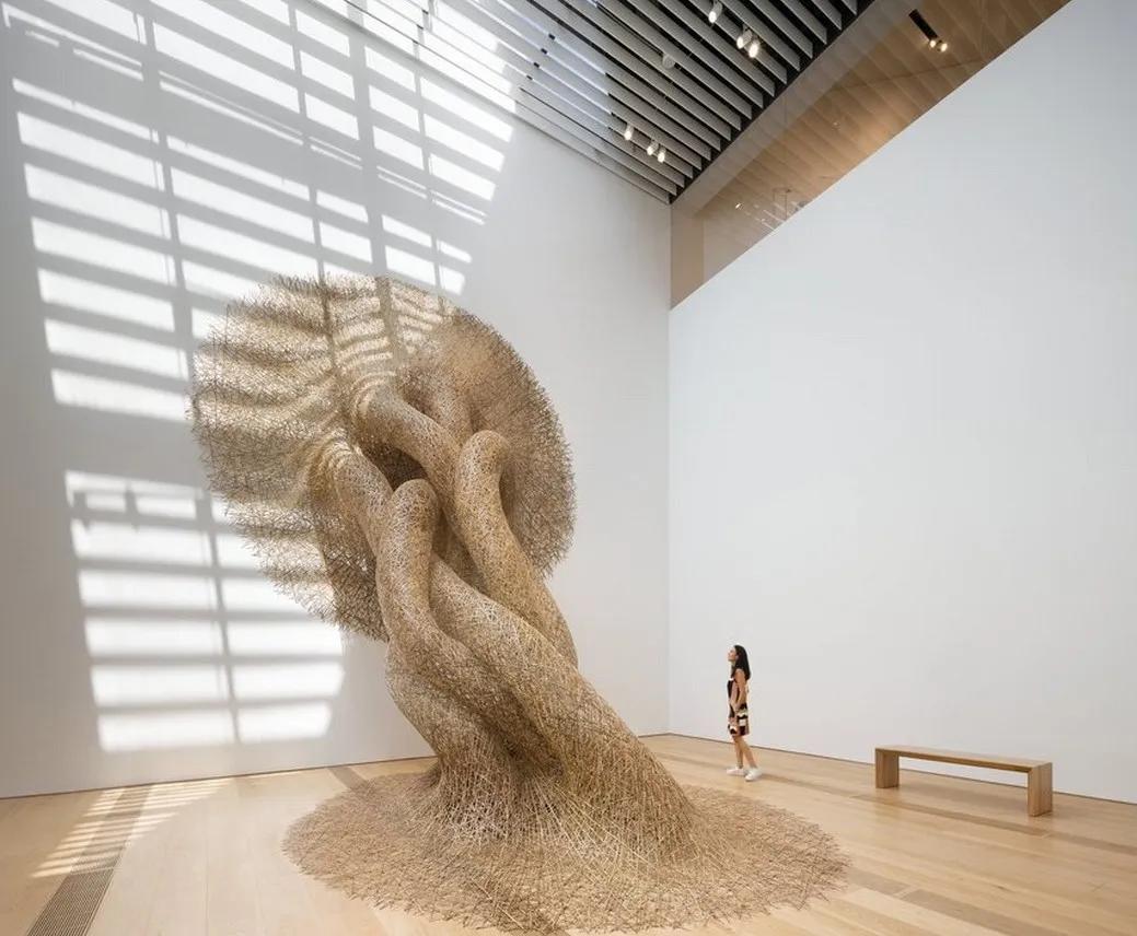 由Kengo kuma & Associates设计的展馆名为“KITHUL-AMI”,专为庆祝斯里兰卡建筑师Geoffrey Bawa 诞辰一百周年而设计,是工作室在澳大利亚的第一个项目。设计团队试图通过使用一种称为“kithul”的葡萄藤(通常用于斯里兰卡传统工艺)来展现巴瓦建筑的“柔和”,同时展示了斯里兰卡的个性和文化。