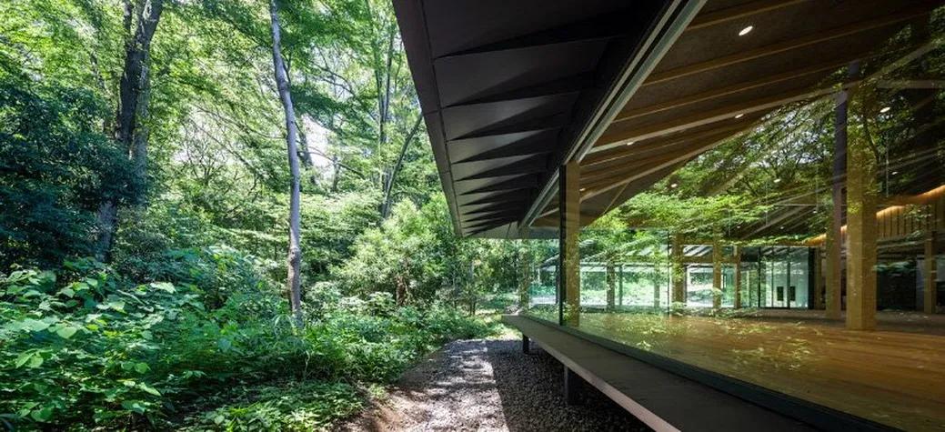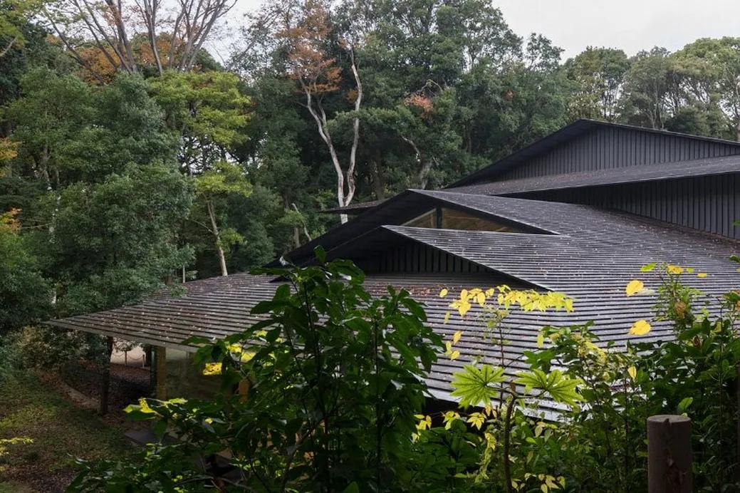 在设计上,隈研吾主张的负建筑理念完美与神社自然环境融合,两层楼的博物馆,在外观上依循传统日式町屋样式,并使用了百叶扇窗与大面积落地玻璃窗,打造开阔视野,消除室内外的既有界线,让隐身于绿地林木间的博物馆,成了这神圣场域里优雅的艺术殿堂。
