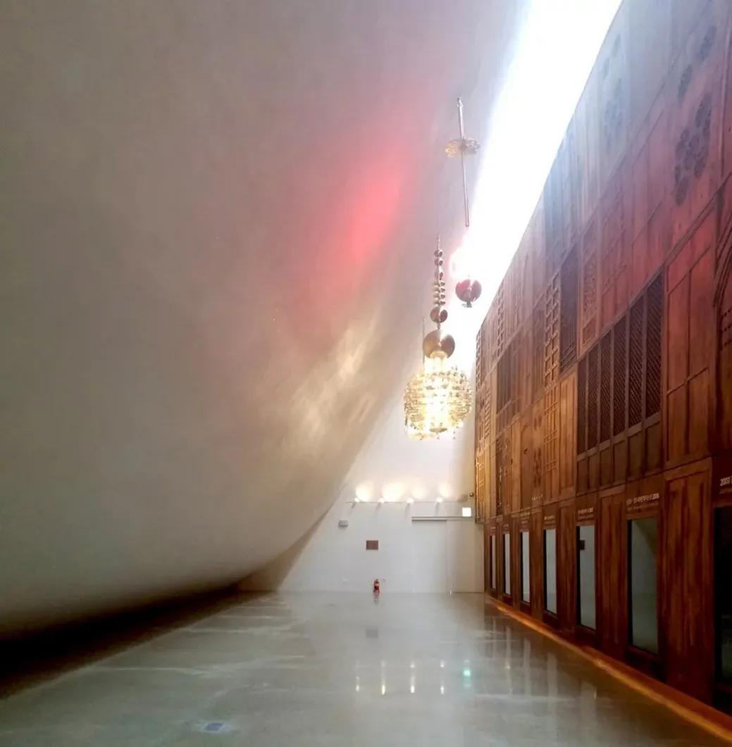 展馆位于斯里兰卡西南海岸的本托塔小镇。在形态上,设计师尽可能避免锐度和直线度,取而代之的是用连续带状的无定形形式,塑造了一个温和的集中纪念碑。这种条带的几何形状使用物理模拟软件,根据预定的展开表面进行3D塑形。