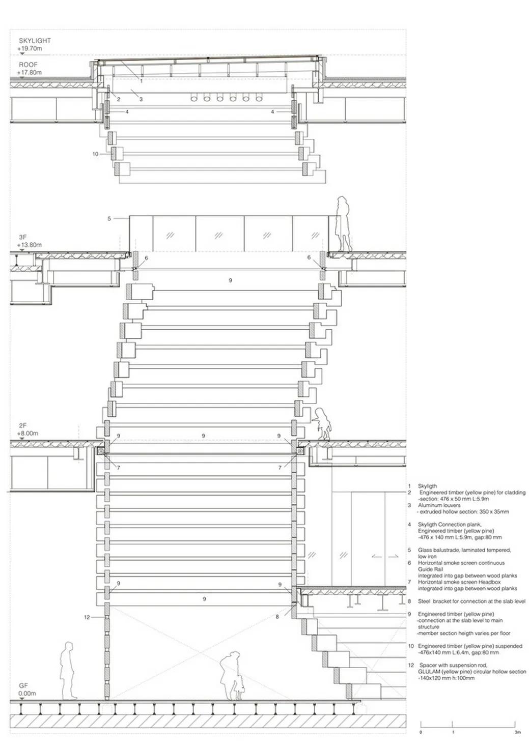 博物馆分为三层,一层是相对大的展览空间,与周围城市景观的节奏和比例相呼应,上层是较小的空间,用于展示小规模的艺术作品。建筑中央的中庭在引入充足的自然光线的同时,建立了不同楼层的联系。建筑在视觉上呈现的最大亮点包括,迄今为止最大的由竹艺术家 Tanabe Chikuunsai IV 打造的装置,以及两件由棉花糖激光盛宴制作的数字艺术作品。