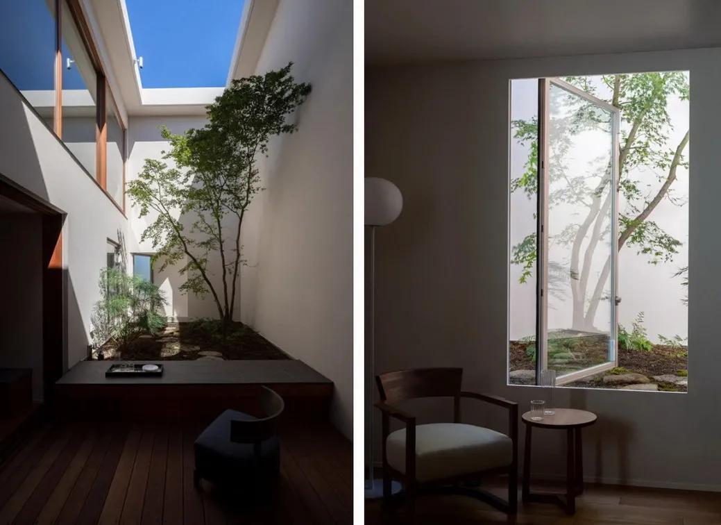 诊所位于一层,迎接来访者的是一个落叶树木花园,茂盛的树木自由生长,隐藏了周围的建筑,这个花园为游客提供了一种轻松而富氧的氛围。